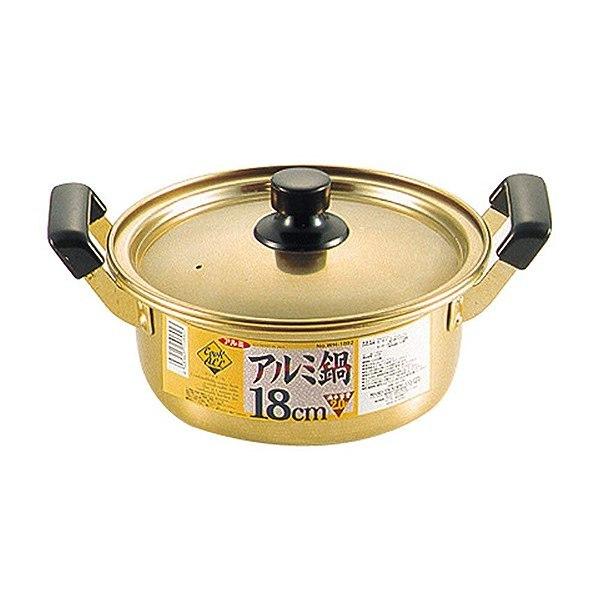 使いやすいベーシックな両手アルミ鍋18cmです。一人鍋やインスタントラーメンを作るのにも便利なサイズです。アルミ鍋は、熱伝導性に加えて、軽くて扱いやすい操作性にも優れています。表面は薄いアルマイト被膜を作る処理(本蓚酸アルマイト加工)を施してあるので酸化・腐食しにくく、光沢も長持ちします。長持ちさせるためにも、空焚きや金属たわし等はおさけ下さい。IHクッキングヒーターには対応しておりません。