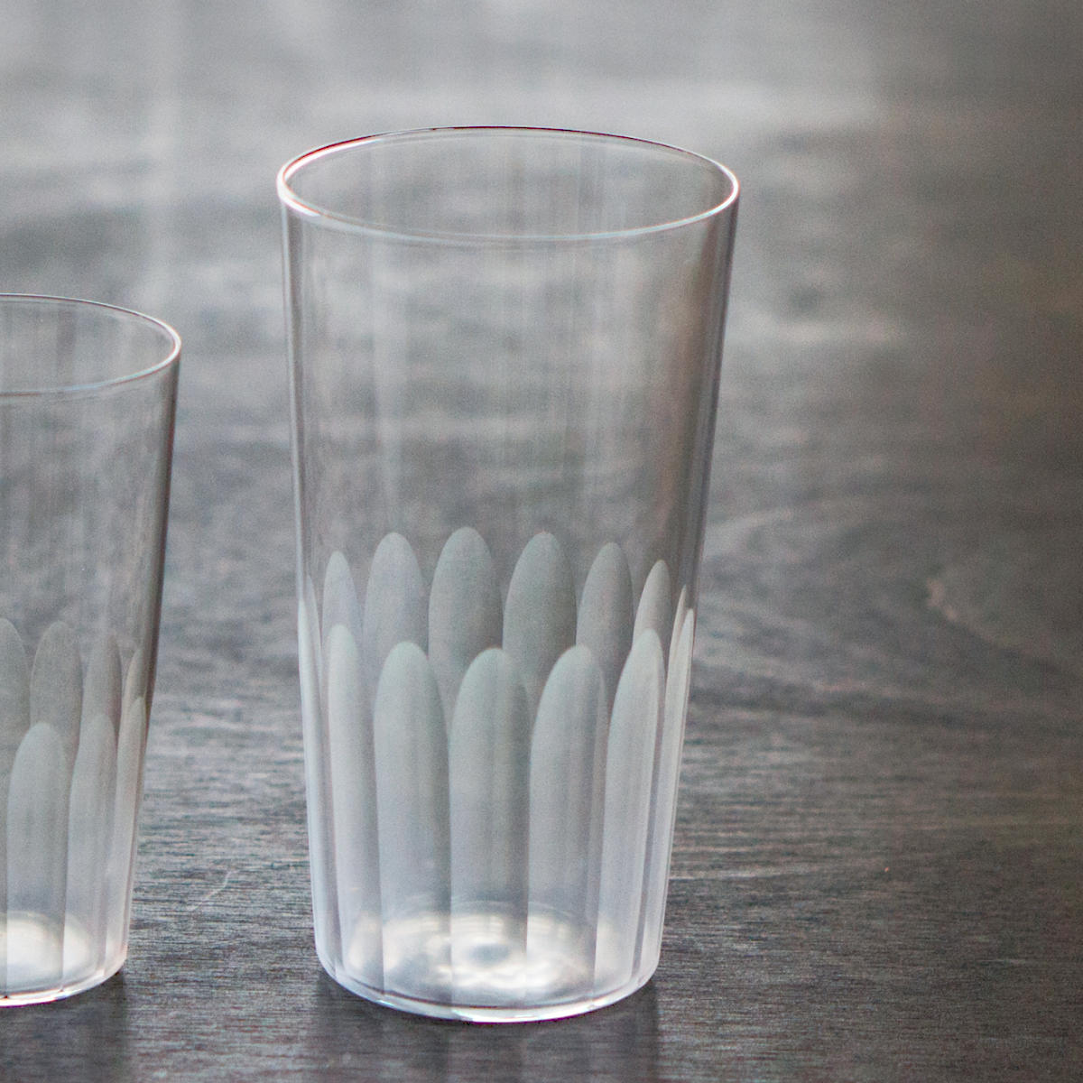 1950年代、廣田硝子が欧米向けに輸出していたグラスを復刻。当時と同じ東京での製造・加工にこだわった、どこか懐かしくも洗練されたデザイン。容量は300ml。缶飲料を2回に分けて楽しむのにちょうどいいサイズ感です。