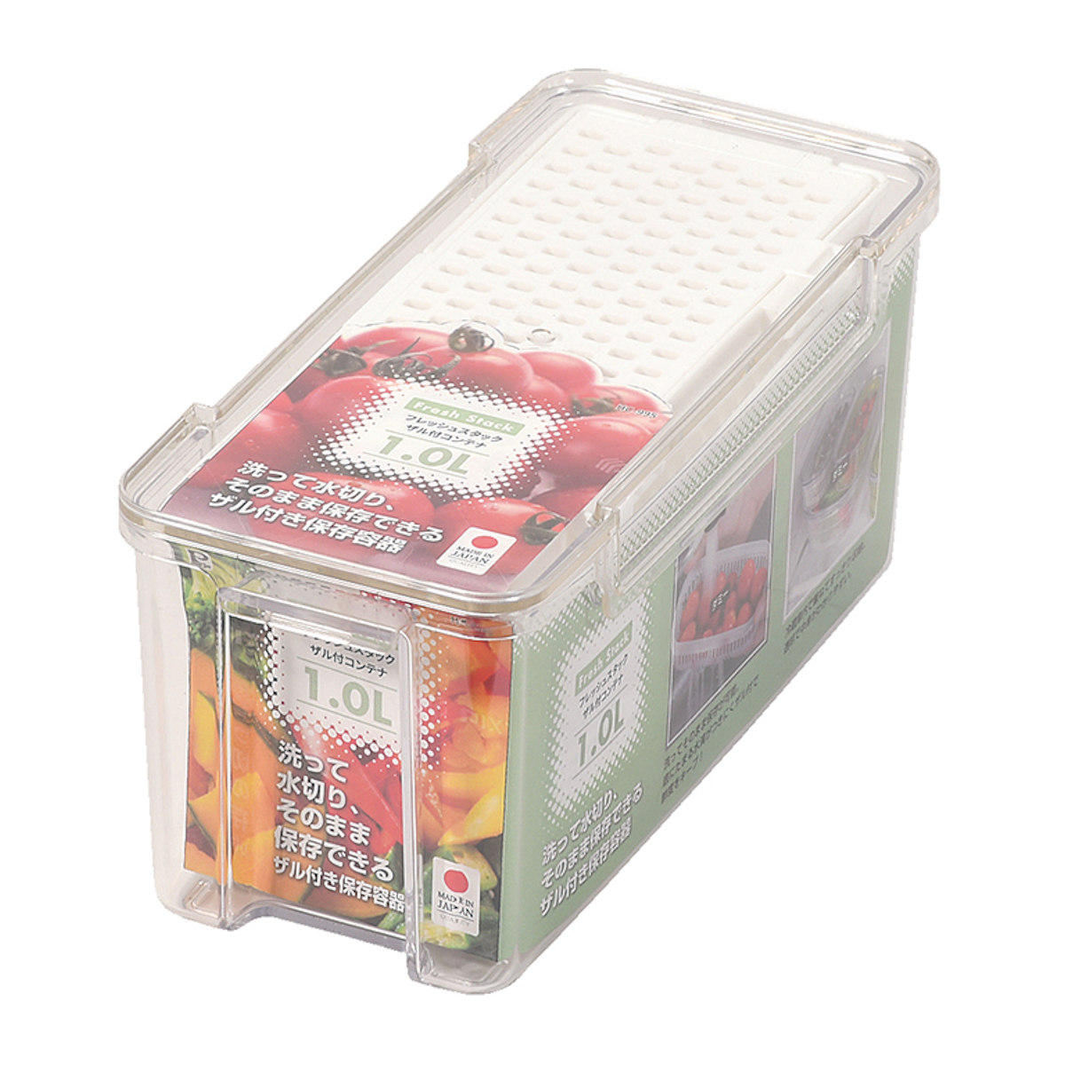 保存容器 1.0L フレッシュスタック ザル付 コンテナ ( ザル付き保存容器 プラスチック 野菜保存容器 フタ付き 野菜 冷蔵庫 日本製 角型 スタッキング 野菜用保存容器 ざる 野菜水切り 透明 長持ち キッチン用品 水切り )