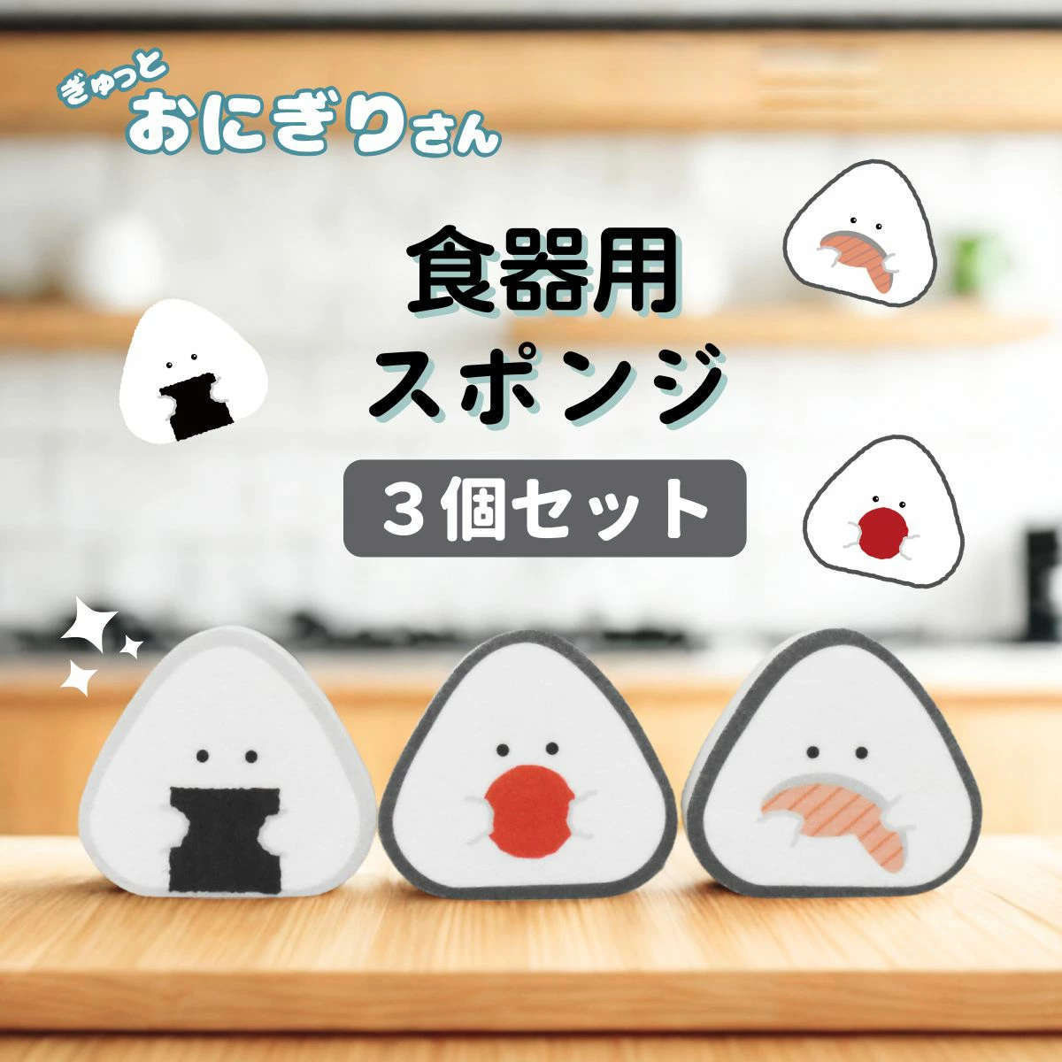 ●ぎゅっとおにぎりさんの食器用スポンジ3個入です。