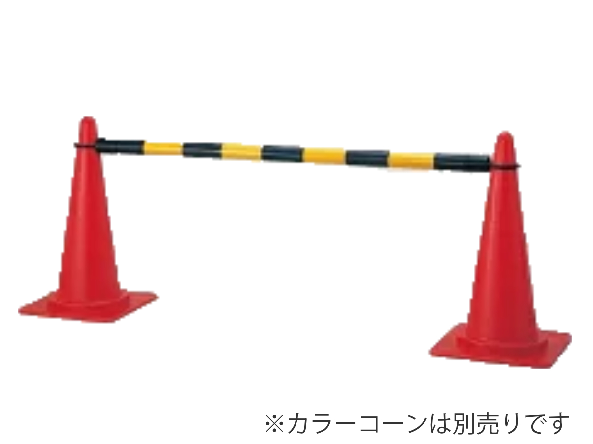 コーンバー ブラック/イエロー 直径5.4cm×長さ1.5m 三角コーン パイロン ( バリケード 安全用品 )