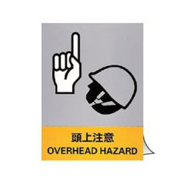 安全標識ステッカー 「 頭上注意 」 英文字入り 5枚組 16×12cm ( 標示シール 英語 看板 安全標識 安全 注意喚起 標識 表示 ステッカー シール 標示 作業 安全用品 注意 喚起 安全グッズ 日本語 二カ国語表記 頭上 )