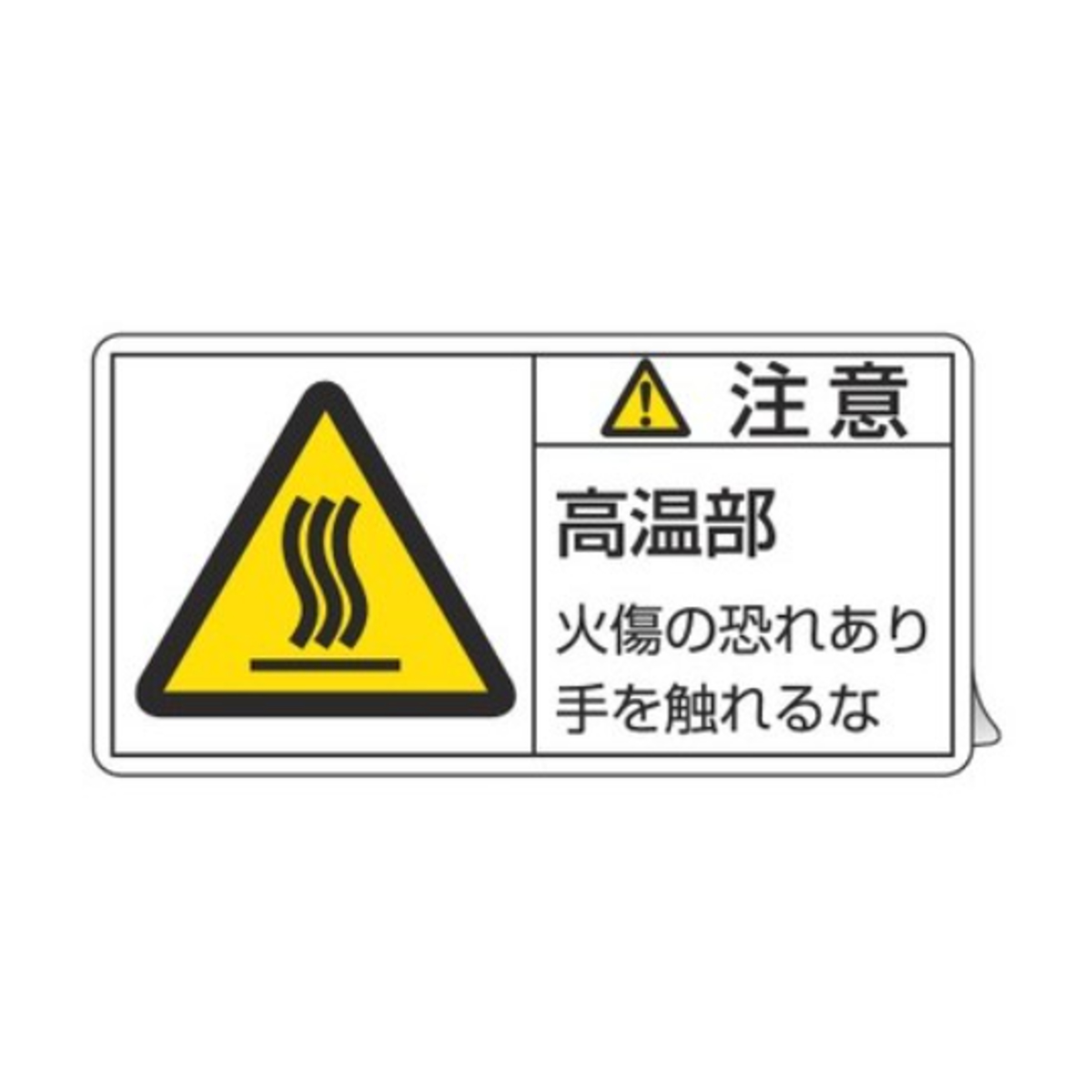 PL警告表示ラベル 「 注意 高温部 」 小 3.5×7cm 10枚組 ( ステッカー 3.5×7センチ 10枚 表示シール 表示 表示シート PL法対策 指示 注意喚起 標示 看板 安全用品 マーク 文字入り )