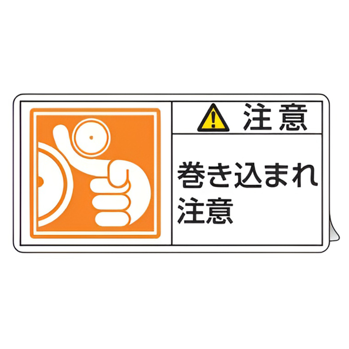 PL警告表示ラベル 「 注意 巻き込まれ注意 」 大 5×10cm 10枚組 ( ステッカー 5×10センチ 10枚 表示シール 警告 表示 表示シート PL法対策 指示 注意喚起 標示 看板 安全用品 巻き込まれ マーク 文字入り )