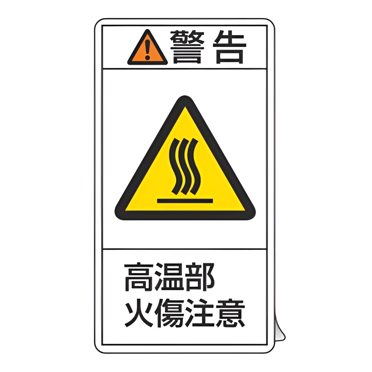 PL警告表示ラベル 「 警告 高温部火傷注意 」 小 7×3.8cm タテ型 10枚組 ( ステッカー 7×3.8センチ 10枚 表示シール 表示 表示シート 表示ステッカー PL法対策 指示 注意喚起 注意 喚起 標示 看板 安全用品 高温部 火傷注意 )
