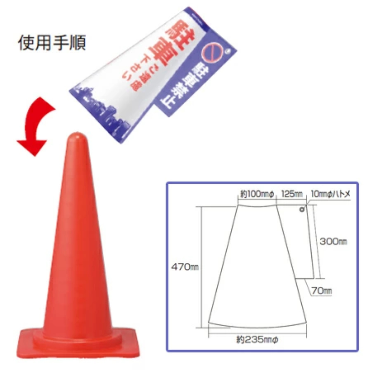 ●カラーコーンにかぶせるだけの表示カバーです。