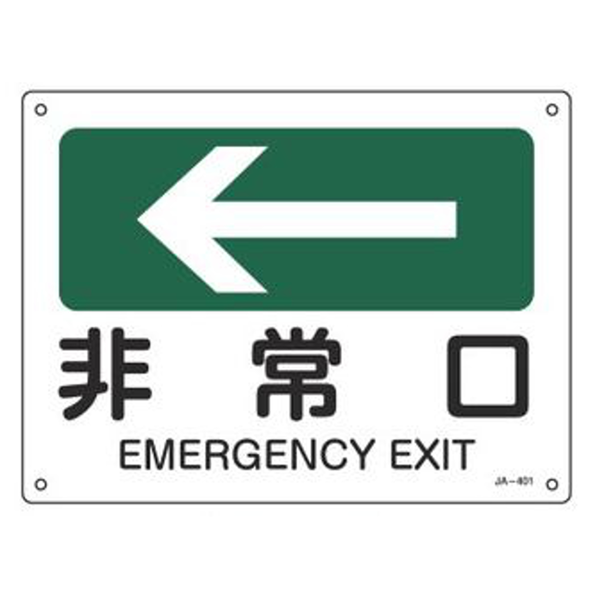 JIS安全標識板 方向表示 「 非常口 」 ← 22.5×30cm ( 看板 標識パネル JIS 安全標識 標示プレート 標識 プレート プレート標識 表示 標示 安全用品 安全グッズ 日本語 二カ国語表記 サイン )