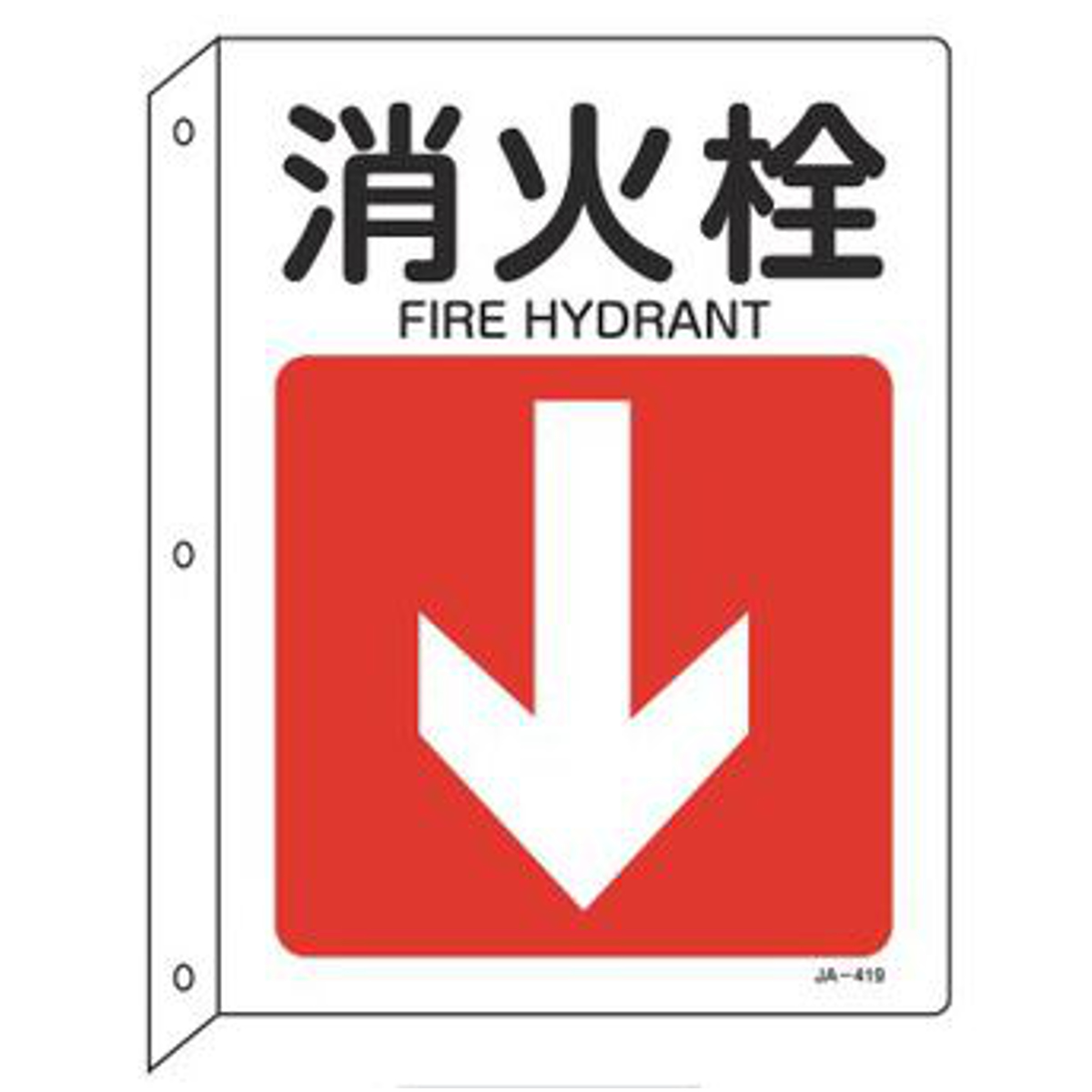 JIS安全標識板 L型 方向表示 「 消火栓 」 ↓ 30×22.5cm ( 看板 標識パネル JIS 安全標識 標示プレート 標識 プレート プレート標識 表示 標示 安全用品 安全グッズ 日本語 二カ国語表記 )