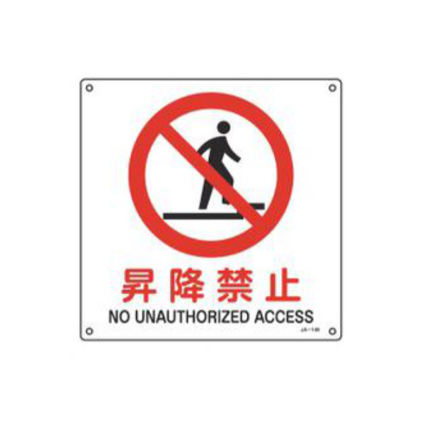 JIS安全標識板 禁止用 「 昇降禁止 」 22.5cm角 Sサイズ ( 看板 標識パネル JIS 安全標識 図記号 標識 表示 禁止 防火 注意標識 安全用品 注意 警告 注意警告 危険 日本語 英語 二カ国語表記 昇降 )