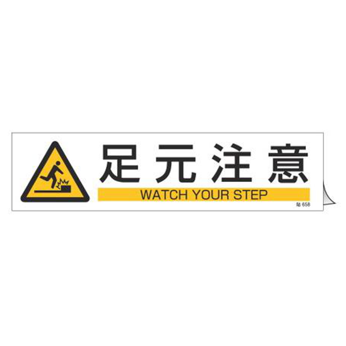 ステッカー標識 「 足もと注意 」 英文字入り 9×36cm ヨコ型 3枚組 ( ステッカー 英語 表示シール 標示プレート 看板 英字 英語表記 標識 プレート 横型 WATCH YOUR STEP プレート標識 表示 標示 イラスト入り 安全用品 )