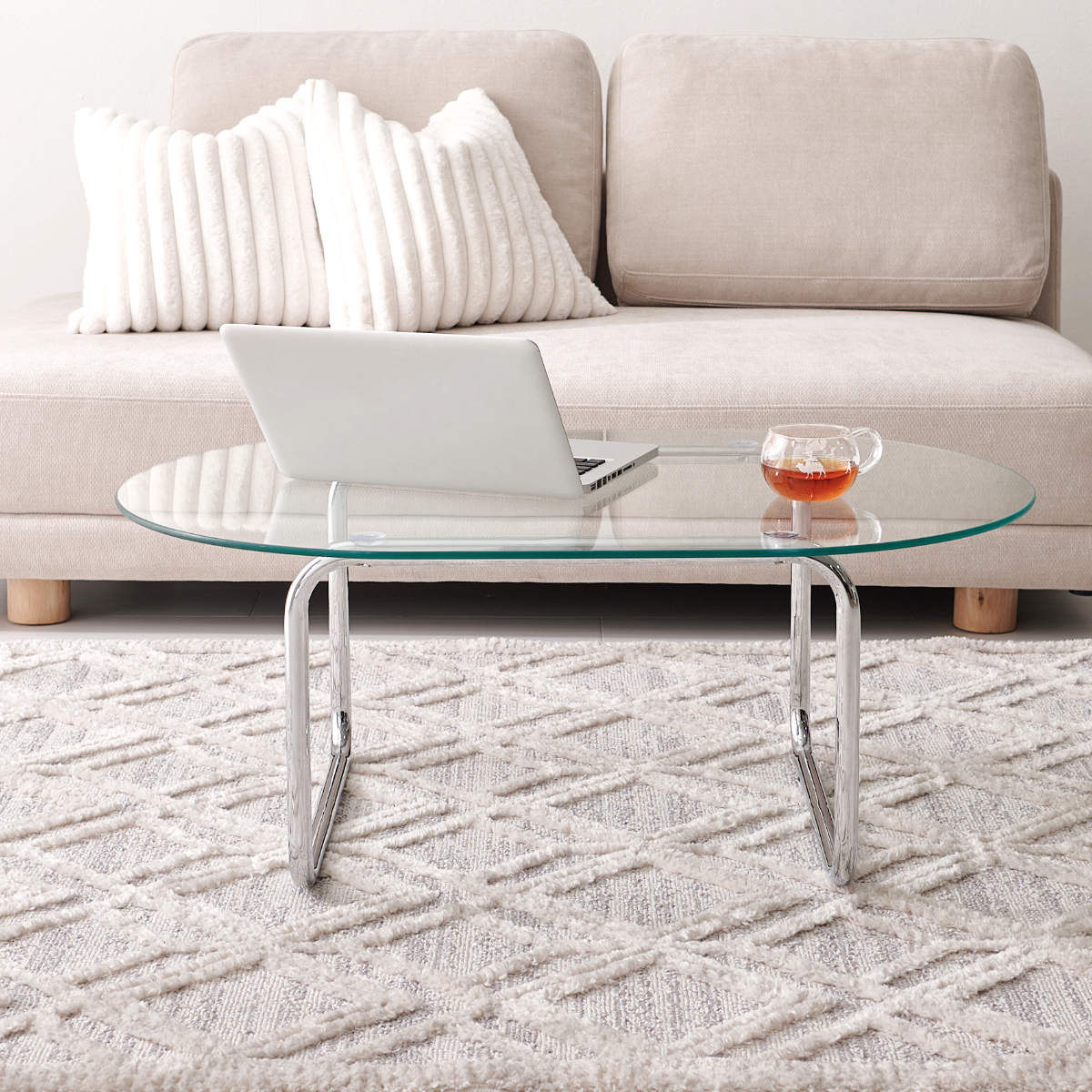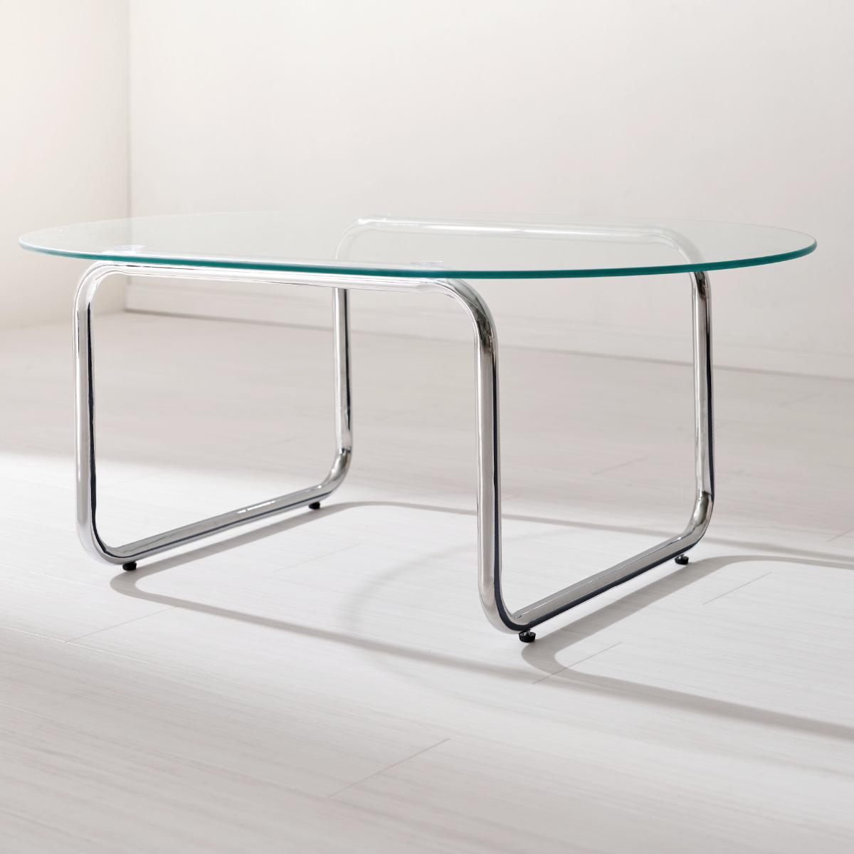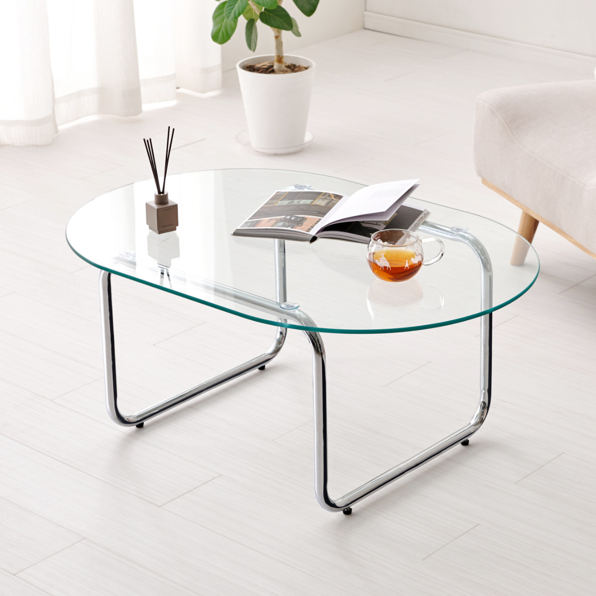 ガラスの輝きや透明感は、お部屋に開放感を与えます。シンプルながらも存在感を放ち、ワンランク上の空間を演出します。幅90cmの楕円形テーブルは、横に広く奥行き60cmで、圧迫感を感じにくいサイズ感です。一人暮らしのお部屋にも取り入れやすいデザインです。