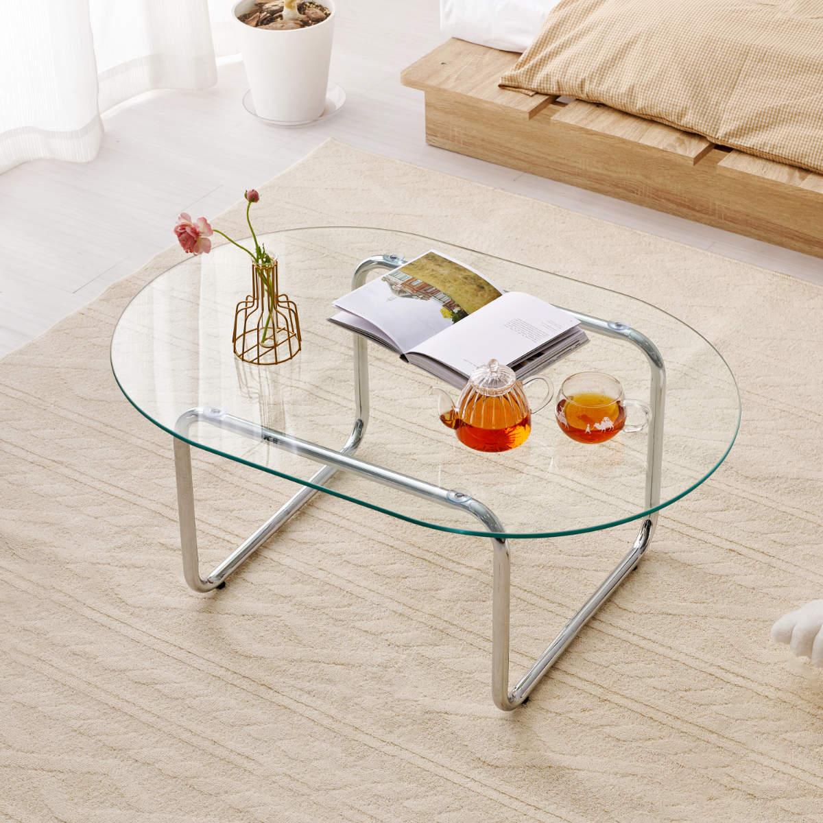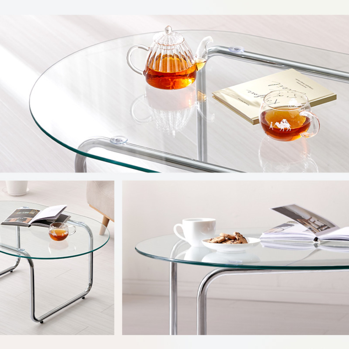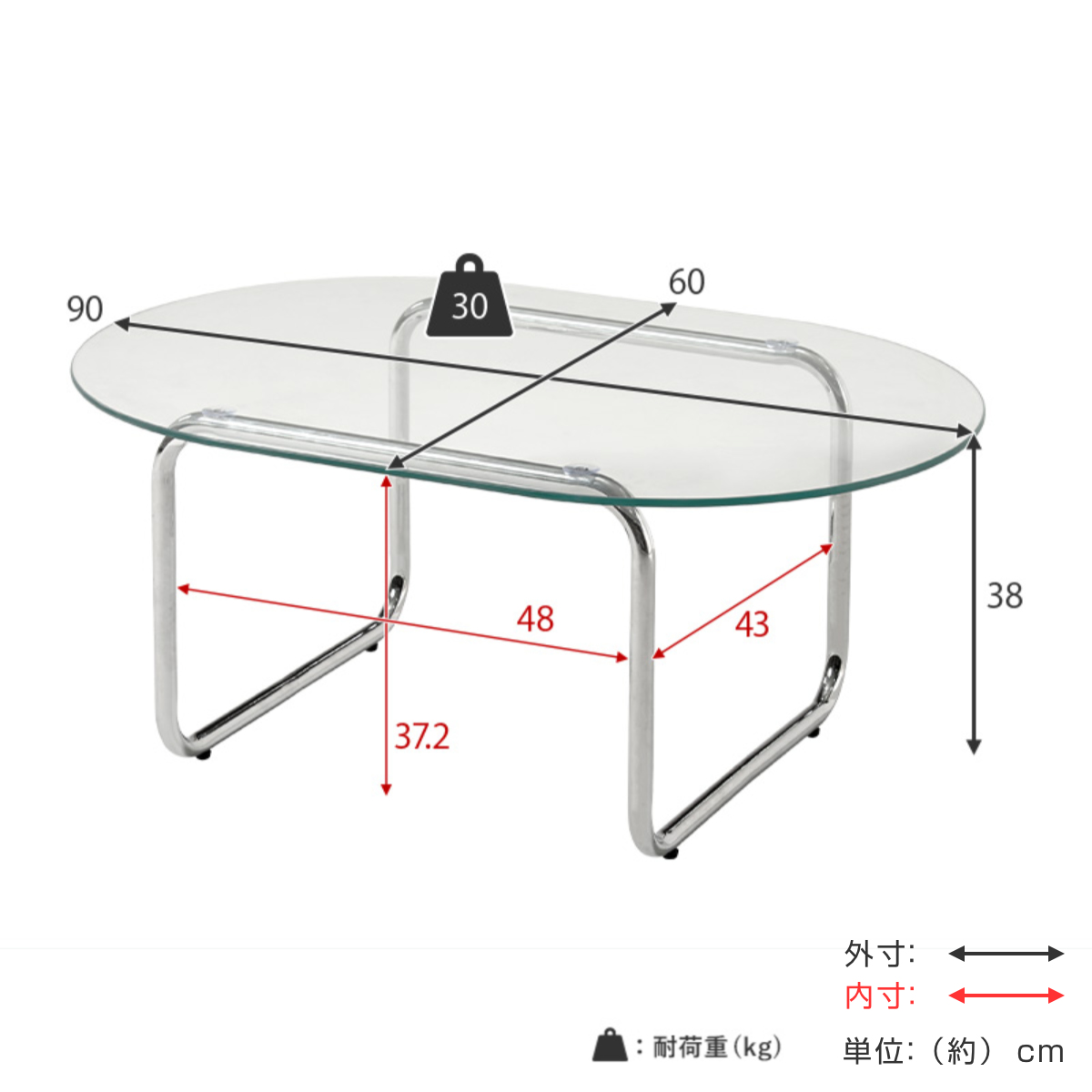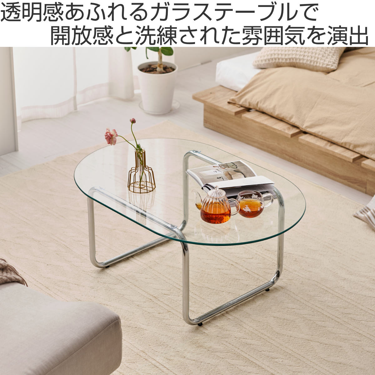 リビングテーブル 楕円 ガラス 幅90cm センターテーブル ( ローテーブル 丸 オーバル ガラステーブル 収納付き 丸テーブル リビング 座卓 カフェテーブル コーヒーテーブル 作業台 強化ガラス テーブル ガラス天板 )