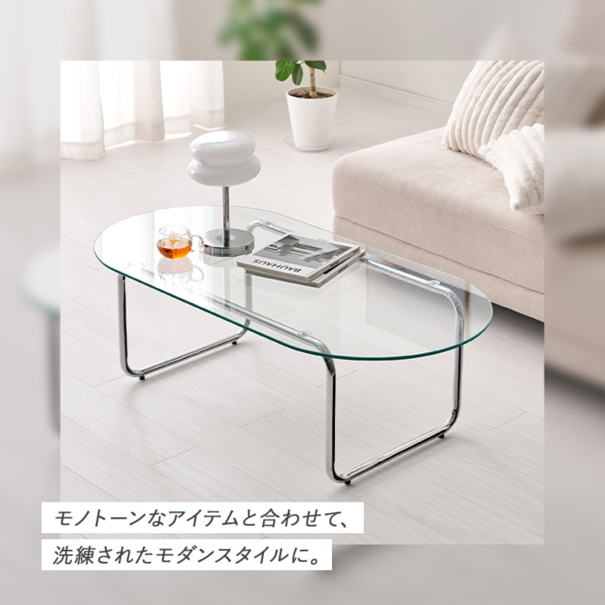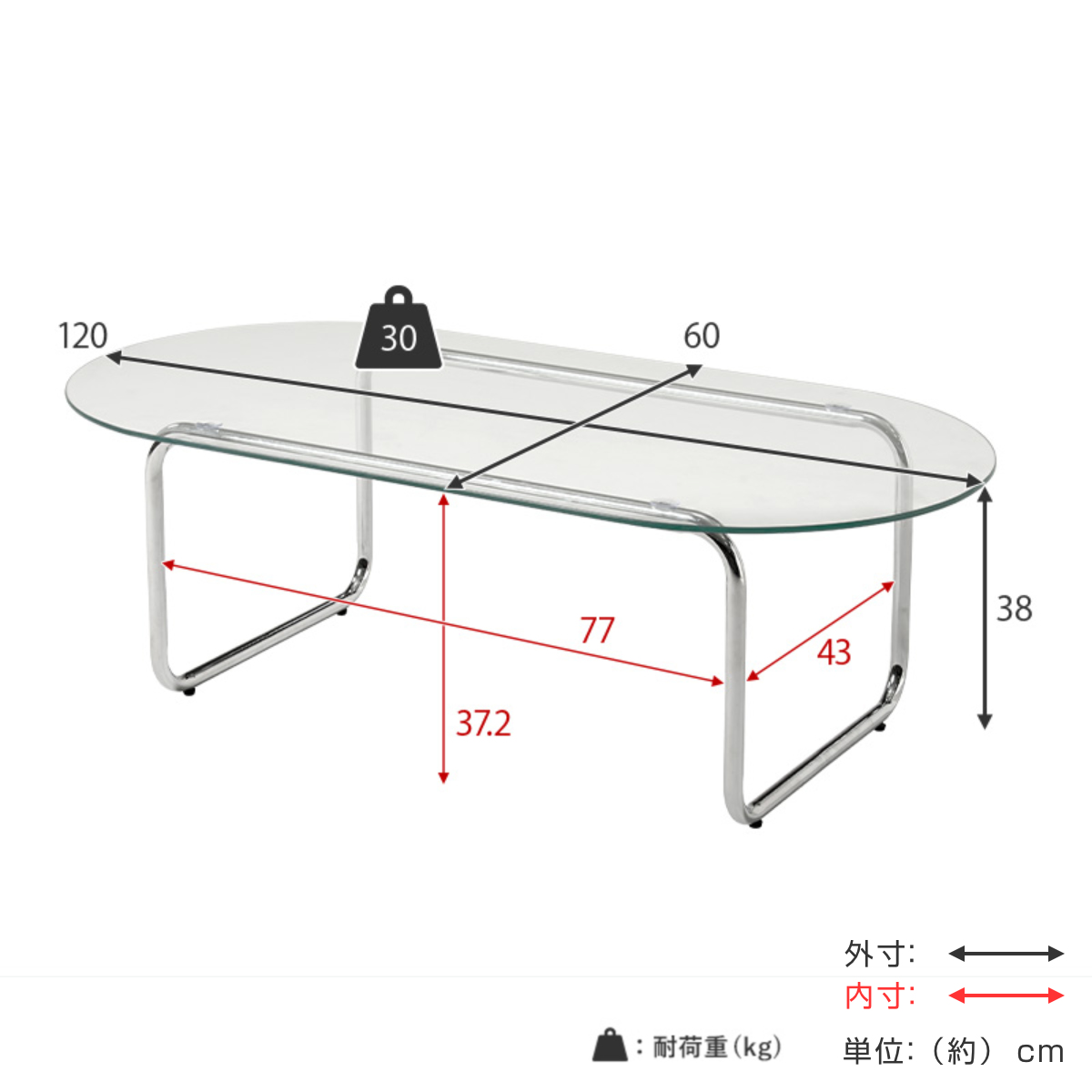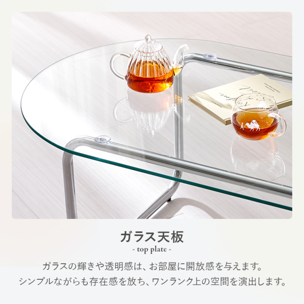 リビングテーブル 楕円 ガラス 幅120cm センターテーブル ( ローテーブル 丸 オーバル ガラステーブル 収納付き 丸テーブル リビング 座卓 カフェテーブル コーヒーテーブル 作業台 強化ガラス テーブル ガラス天板 )