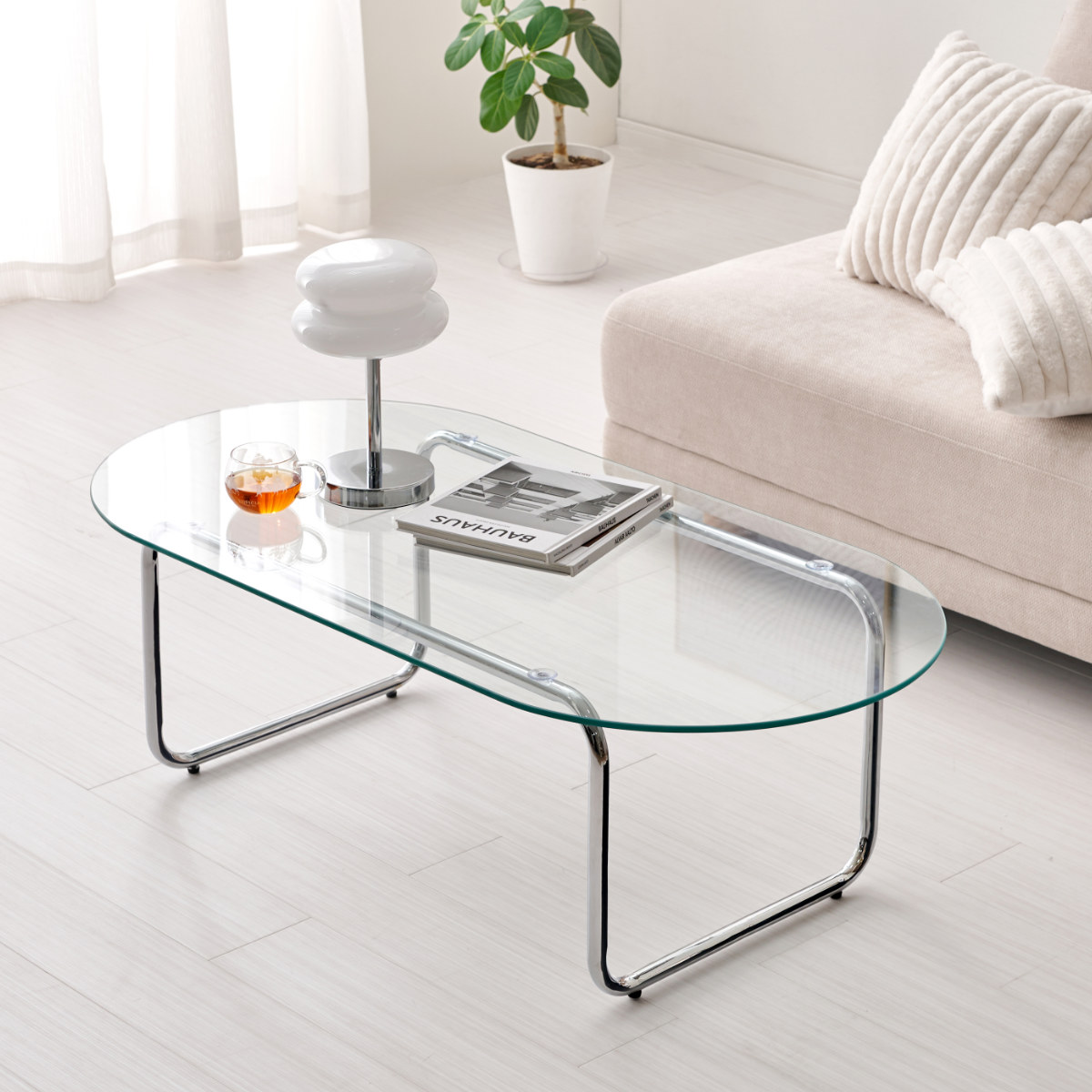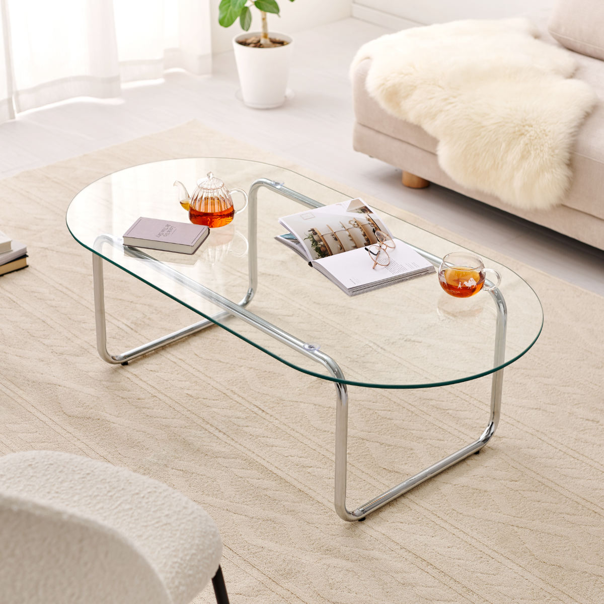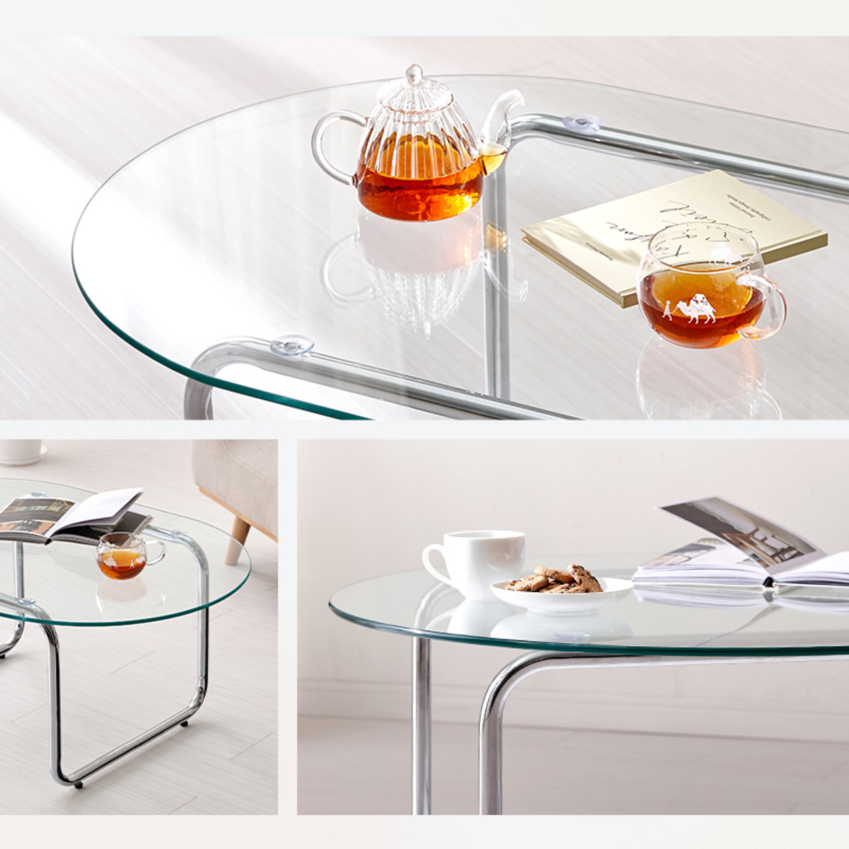 リビングテーブル 楕円 ガラス 幅120cm センターテーブル ( ローテーブル 丸 オーバル ガラステーブル 収納付き 丸テーブル リビング 座卓 カフェテーブル コーヒーテーブル 作業台 強化ガラス テーブル ガラス天板 )