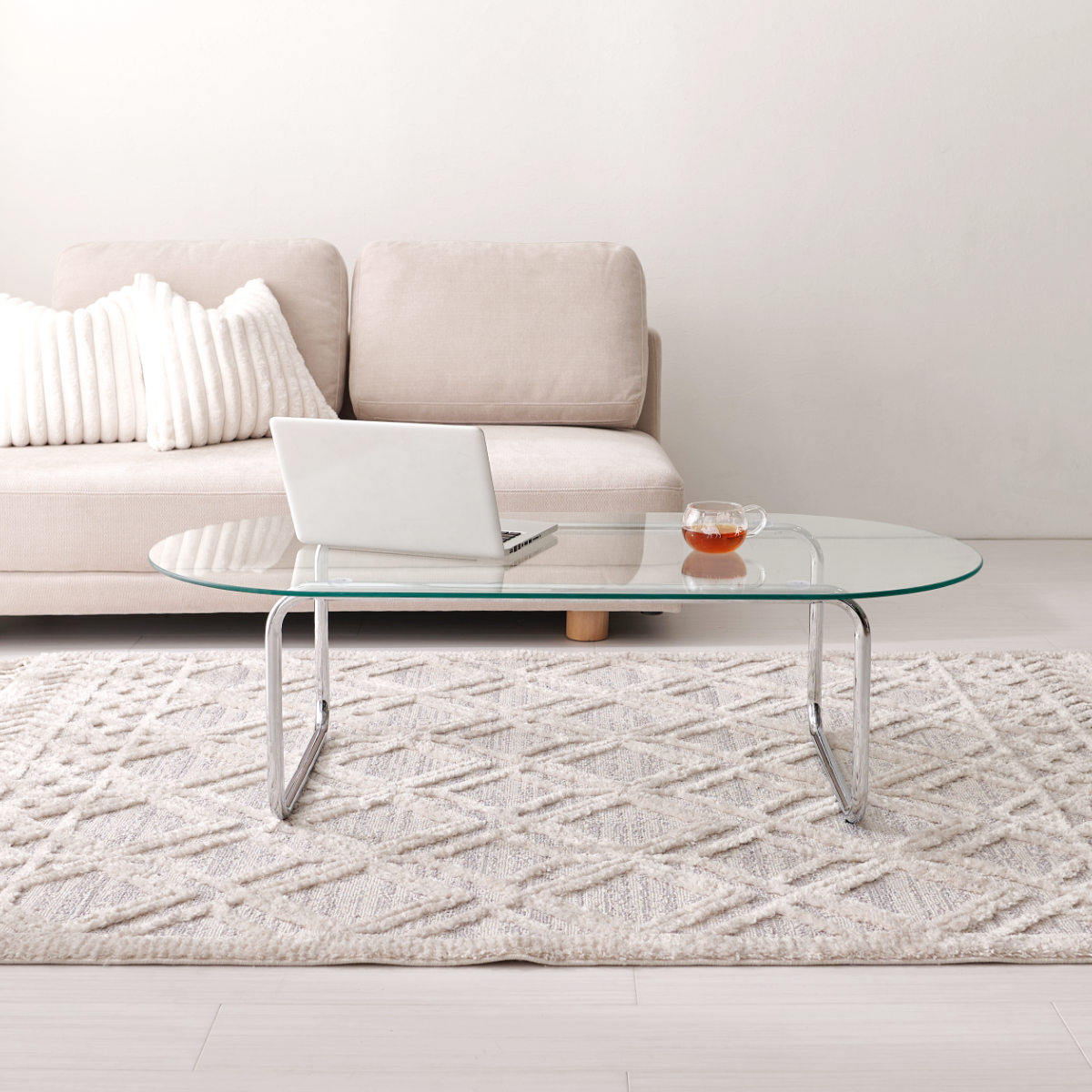 ガラスの輝きや透明感は、お部屋に開放感を与えます。シンプルながらも存在感を放ち、ワンランク上の空間を演出します。幅120cmの広々サイズは、2人でゆとりを持って、4人でも快適に使える広さ。家族団らんの時間や来客のシーンにもおすすめです。