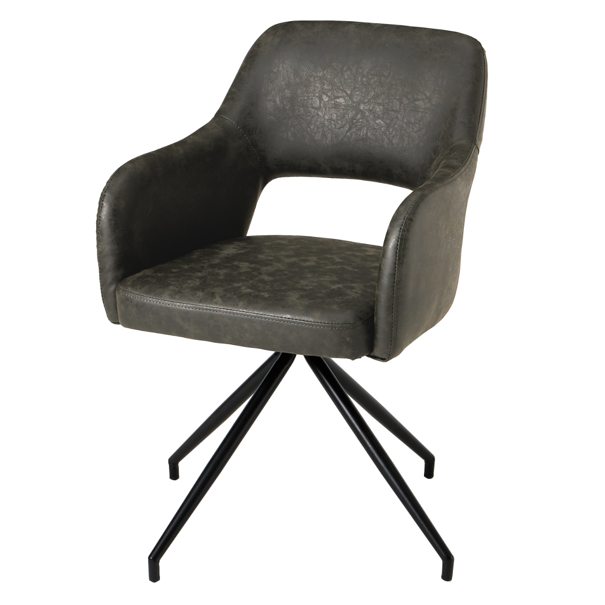 ダイニングチェア 回転 肘付き 座面高44.5cm スィーベルチェア ( チェア ダイニング イス 椅子 レザー調 ファブリック 食卓椅子 肘掛け デスクチェア チェアー いす 食卓 リビング リビングチェア 回転椅子 ) 【本革風ダークグレー】