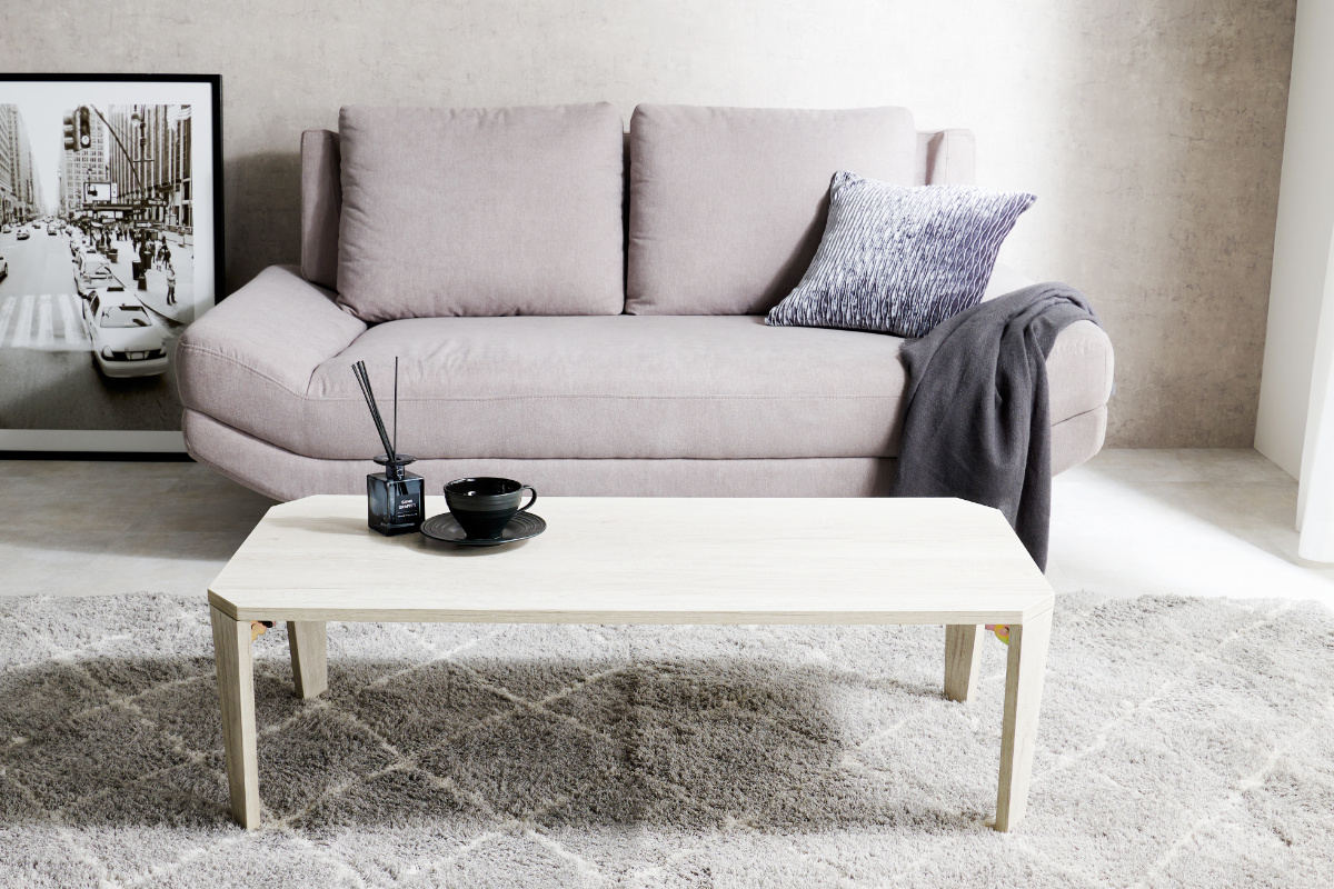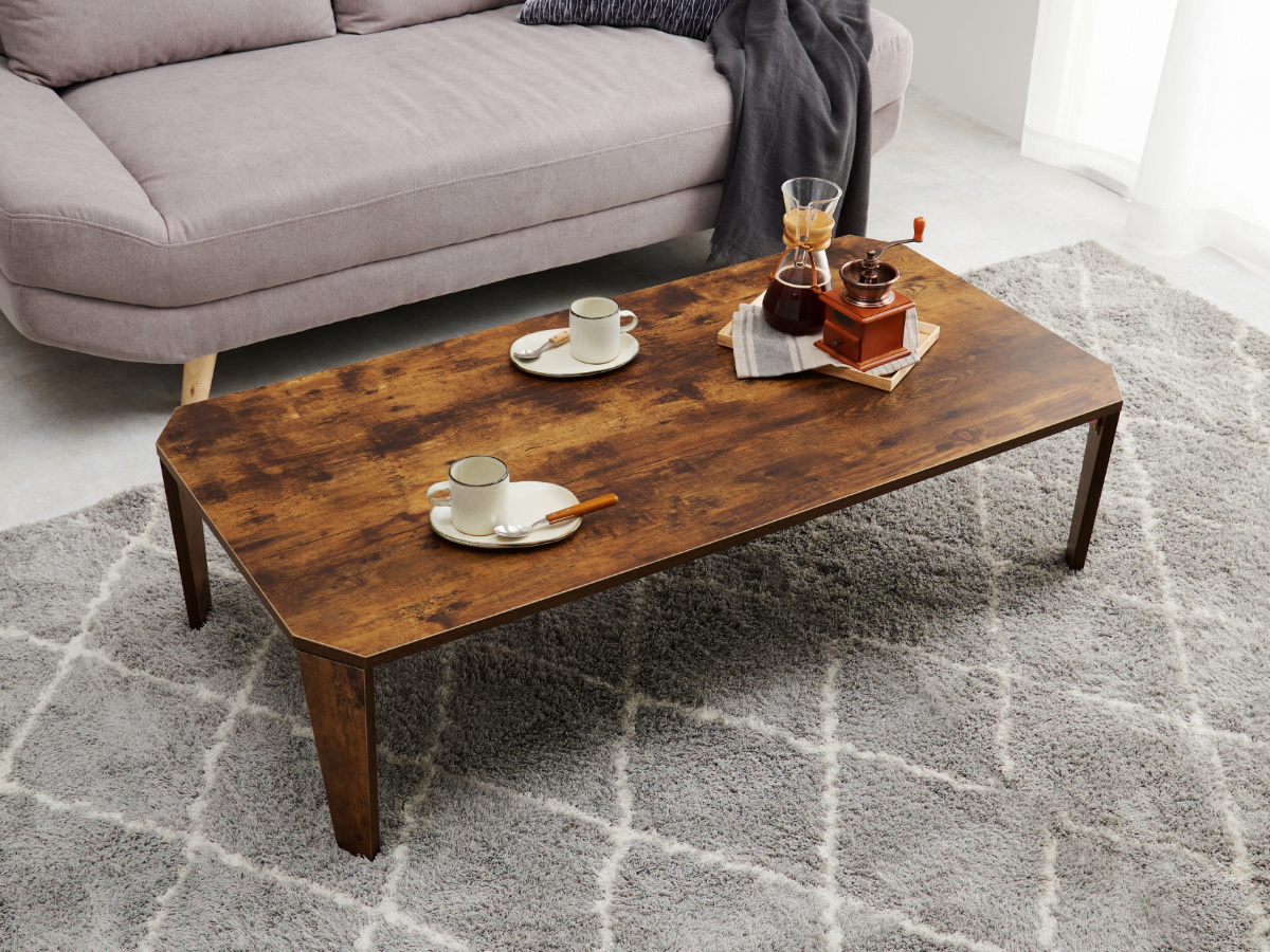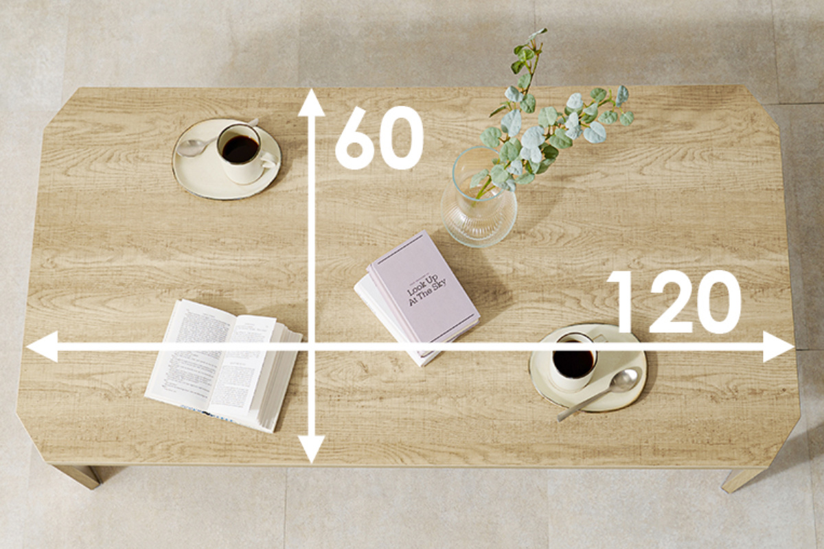 幅120cm、奥行60cmのゆったりとした天板なので、作業用デスクや食事用の座卓、来客時のサブテーブルにも活躍します。ライフスタイルに合わせて、自由に使える万能テーブルです。