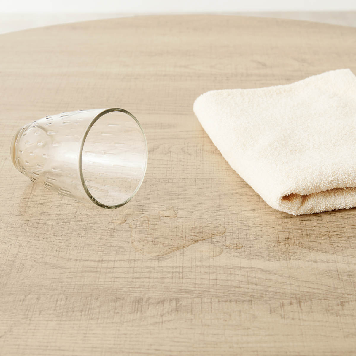 表面には水や汚れに強いメラミン樹脂加工シートを施しています。こぼしてもサッと拭き取るだけなので、お手入れが簡単で清潔に使えます。