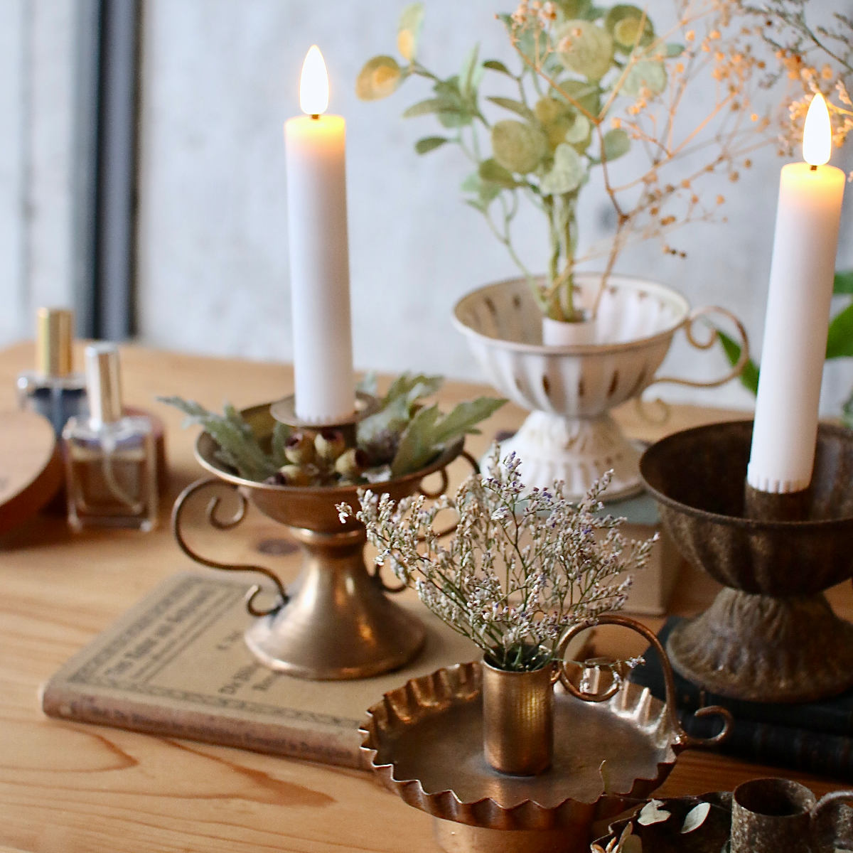 ●キャンドルだけでなく、ドライフラワーやオブジェとの組み合わせなどアイディアが広がります。
