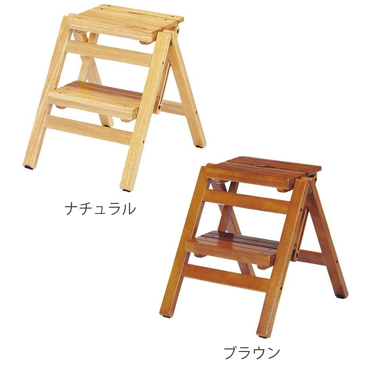 踏み台 幅43cm 2段 折りたたみ 省スペース スリム 子供 天然木 木製 脚立 ステップチェア ( 踏台 椅子 イス 台 ナチュラル 木 ステップ台 スツール 北欧 シンプル ) 【ブラウン】