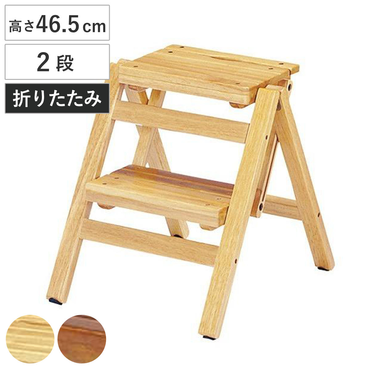 踏み台 幅43cm 2段 折りたたみ 省スペース スリム 子供 天然木 木製 脚立 ステップチェア ( 踏台 椅子 イス 台 ナチュラル 木 ステップ台 スツール 北欧 シンプル ) 【ナチュラル】