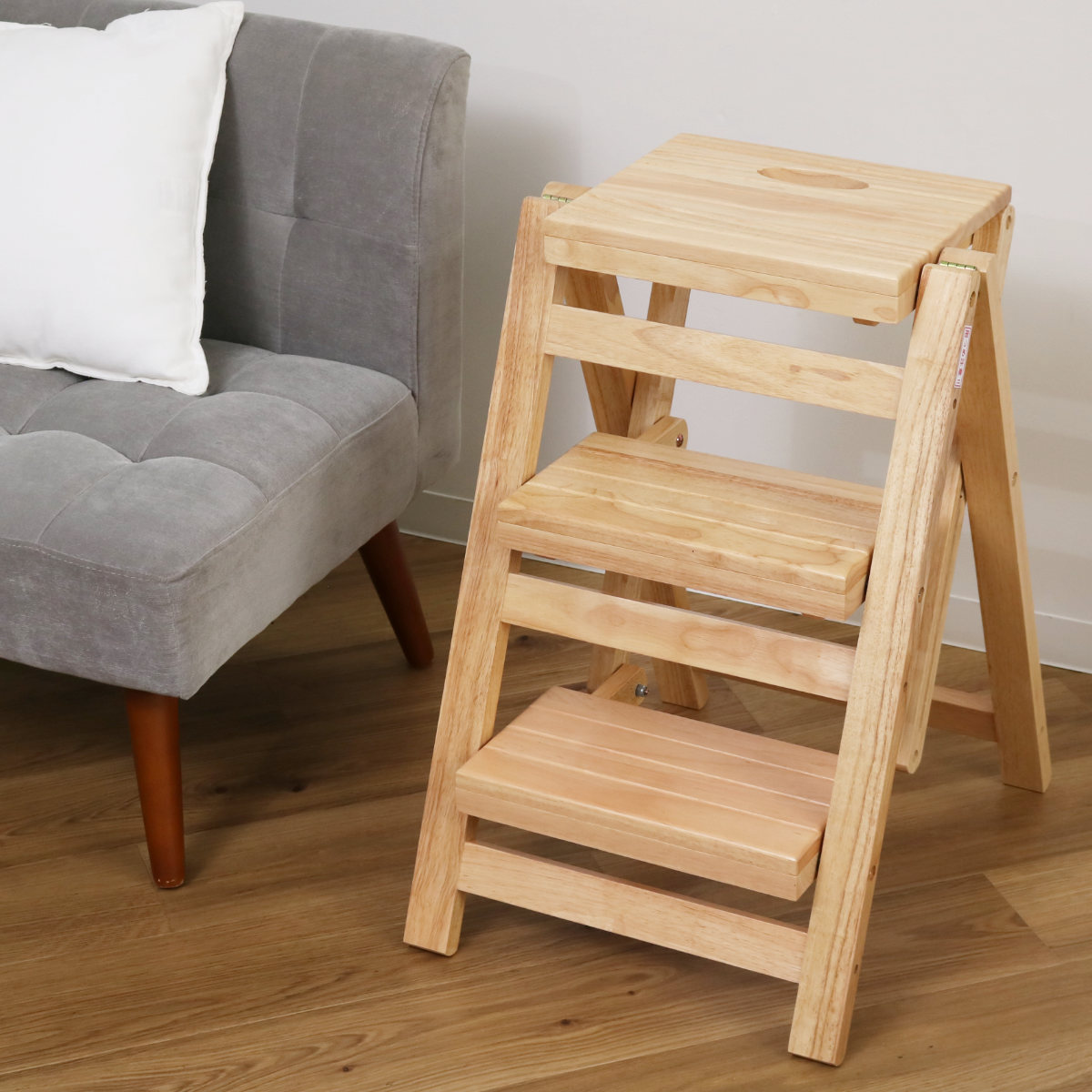 高い所の物を取りたい時や、照明・エアコンの掃除など「あと少しで届くのに」を解決。暮らしの中のちょっとした不便を、サッと快適にしてくれる木製の踏み台です。天然木ならではのやさしい風合いで、出しっぱなしでもインテリアに自然と馴染みます。