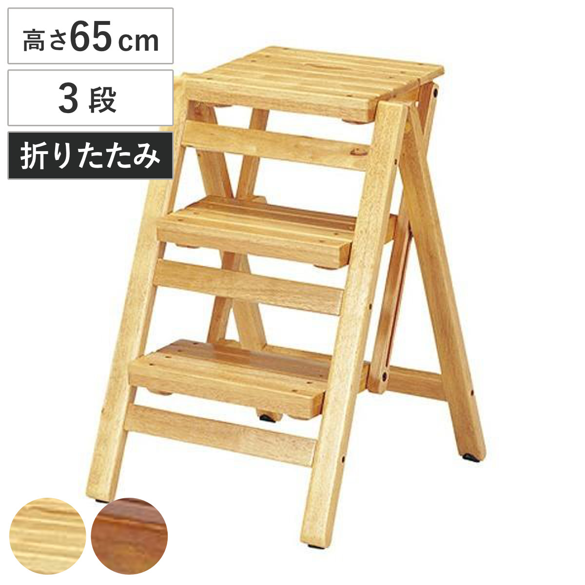 踏み台 幅43cm 3段 折りたたみ 省スペース スリム 子供 天然木 木製 脚立 ステップチェア ( 踏台 椅子 イス 台 ナチュラル 木 ステップ台 スツール 北欧 シンプル ) 【ブラウン】