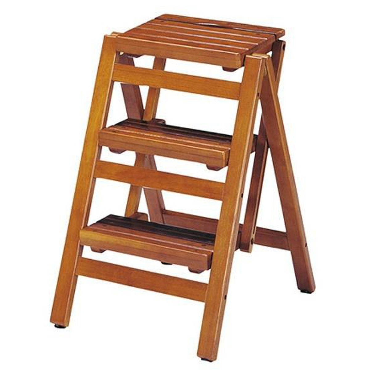 踏み台 幅43cm 3段 折りたたみ 天然木脚立 ステップチェア ( 踏台 木製 スツール ディスプレイラック 椅子 イス 台 棚 高さ65.5cm 省スペース コンパクト スリム 子供 ナチュラル 木 ステップ台 北欧 シンプル ) 【ブラウン】