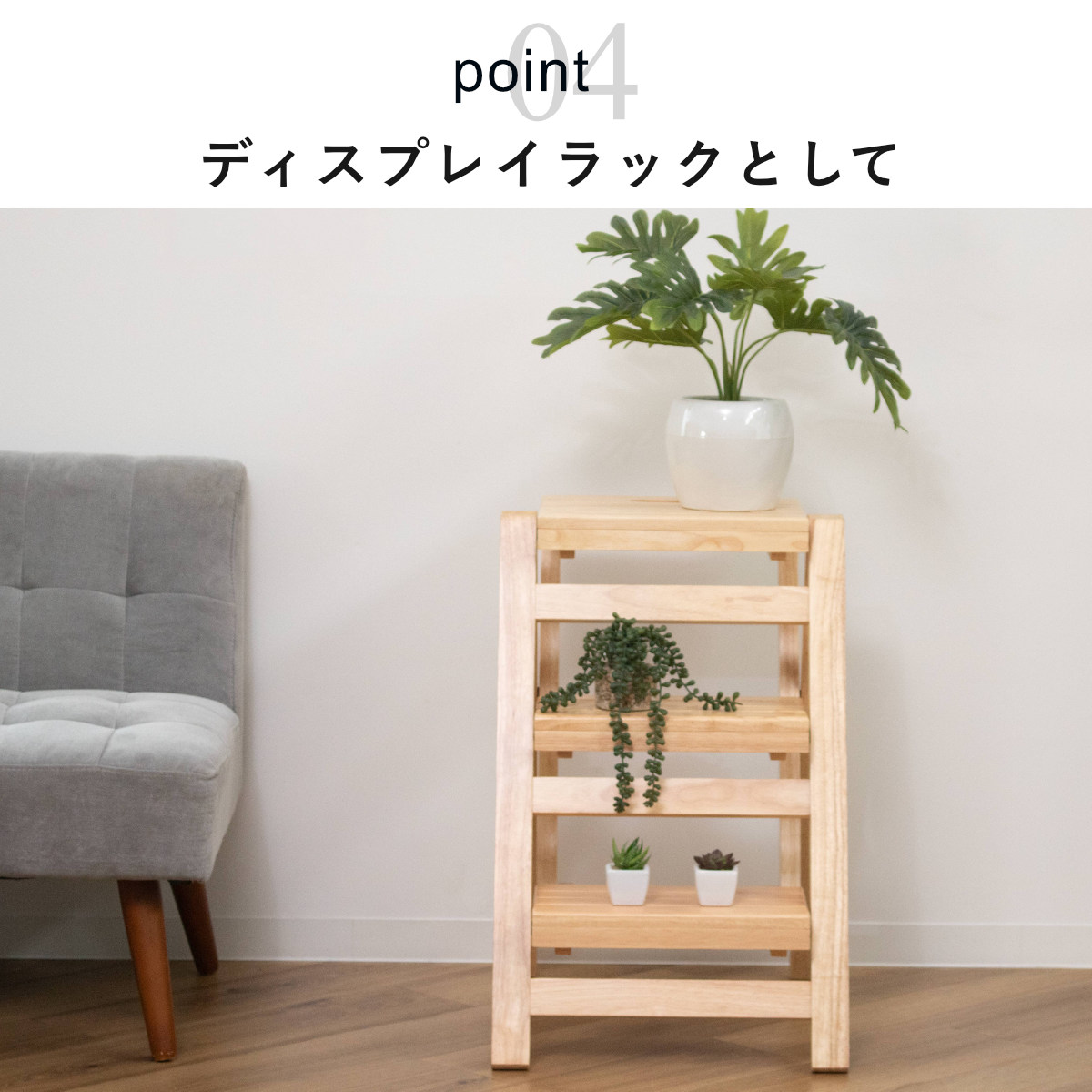 サイドテーブルや植物のディスプレイに。
