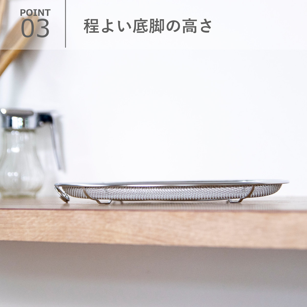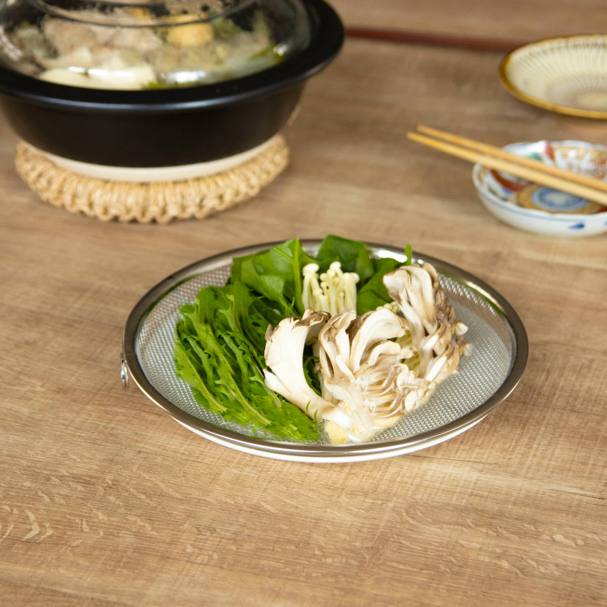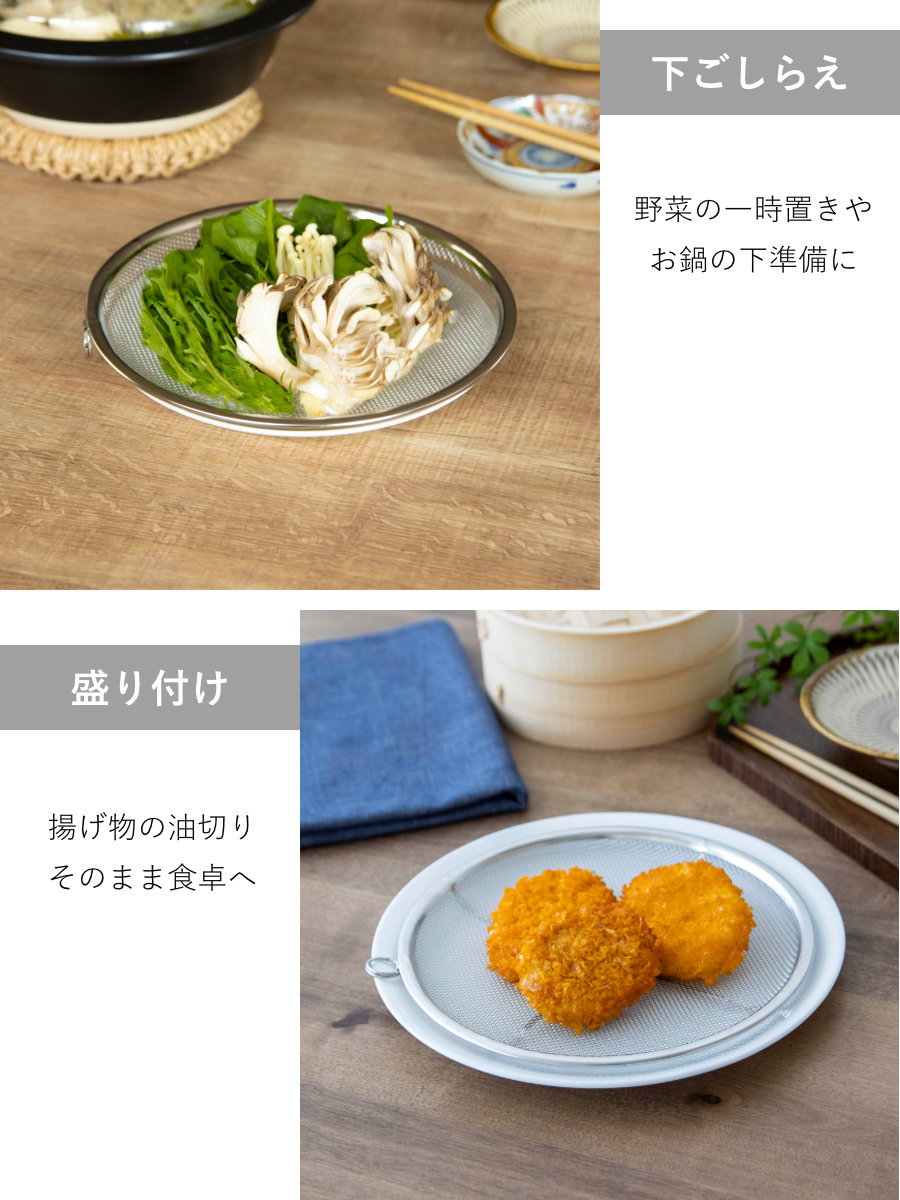 関連キーワード:天ぷら網 フライ網 油切り網 トレイ ステンレス製 18-8ステンレス キッチン用品 キッチン雑貨 キッチンツール 調理小道具 調理用品 調理小物 調理ざる 調理用ざる 脚付き 保存 容器 台所 コランダー 丸 素麺 うどん そば 下準備 盛り付け スタッキング シルバー シンプル おすすめ オススメ 便利 役立つ サビにくい 錆びにくい 高級感 食洗機OK 引掛け 収納 コンパクト 直径23cm 高さ2cm
