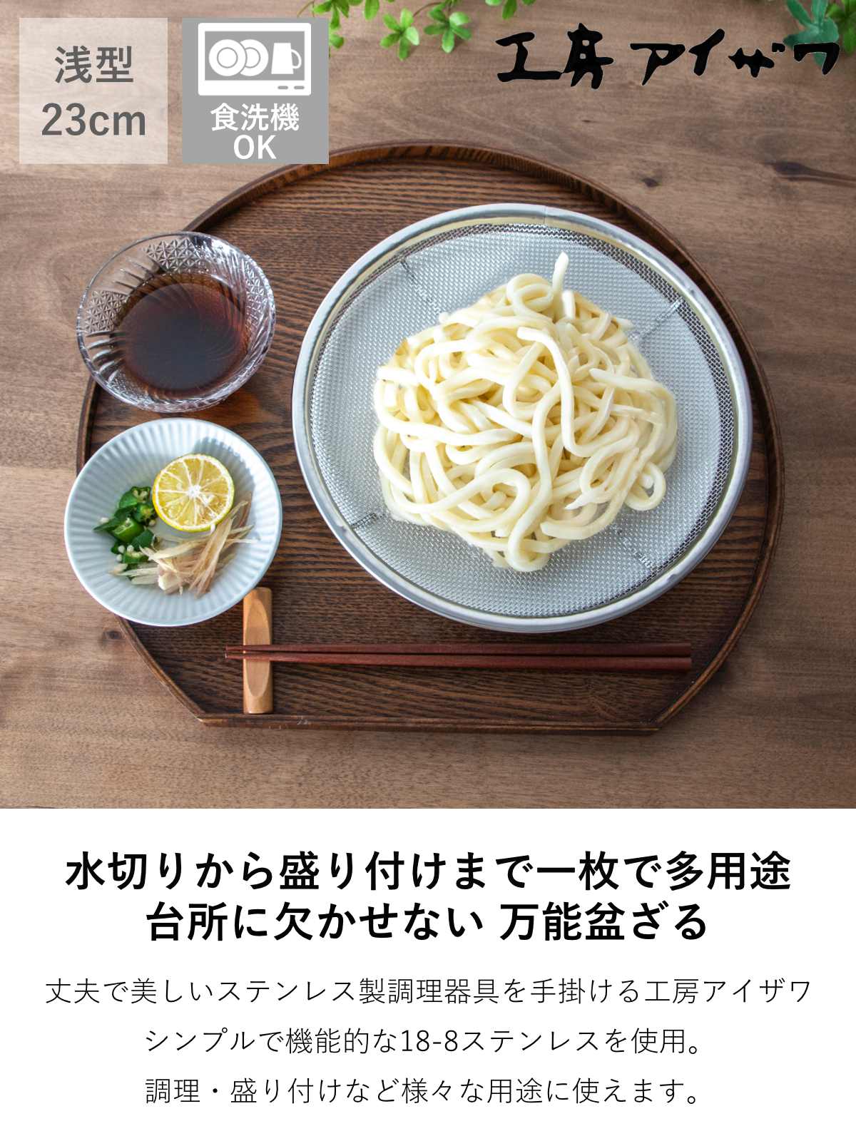 工房アイザワ 盆ザル 23cm リング付き ボンザル 浅型 ( キッチン ざる 足付き 薄型 食洗機対応 料理 調理 水切り ステンレス 湯切り 下ごしらえ 油切り 網 トレー ステンレスザル 円形ザル 使いやすい 丈夫 アイザワ )