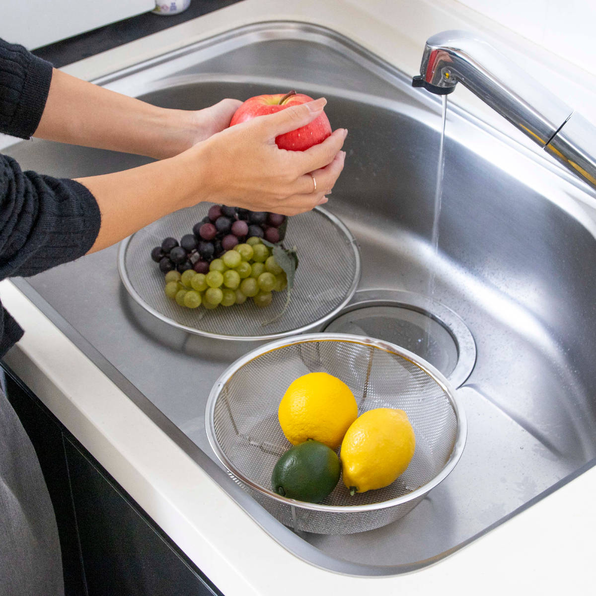 底面に足が付いているので、シンクに直置きしても底がつかず衛生的にお使いいただけます。底が上がっていることで、通気性も良く乾きやすいです。