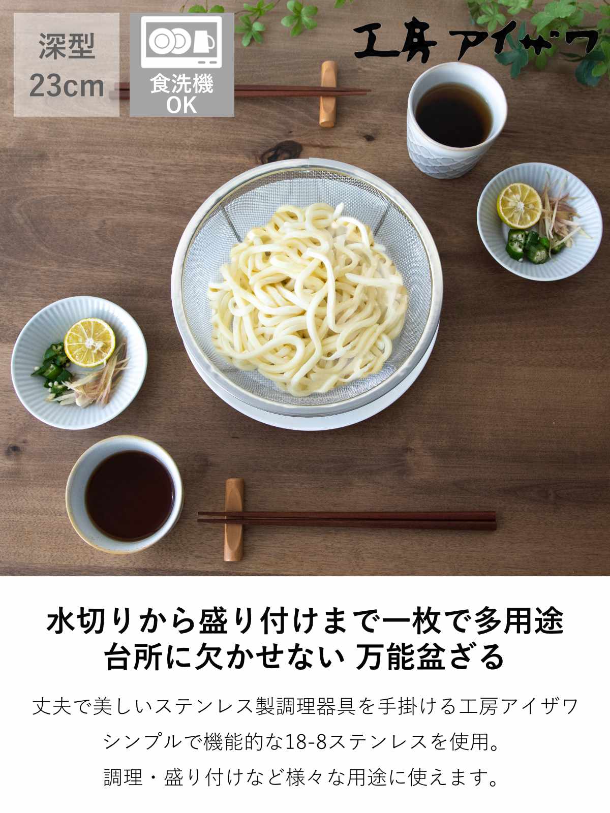 工房アイザワ 盆ザル 23cm リング付き ボンザル 深型 ( キッチン ざる 足付き 食洗機対応 料理 調理 水切り ステンレス 湯切り 下ごしらえ 油切り 網 トレー ステンレスザル 円形ザル 使いやすい 丈夫 アイザワ キッチンツール )