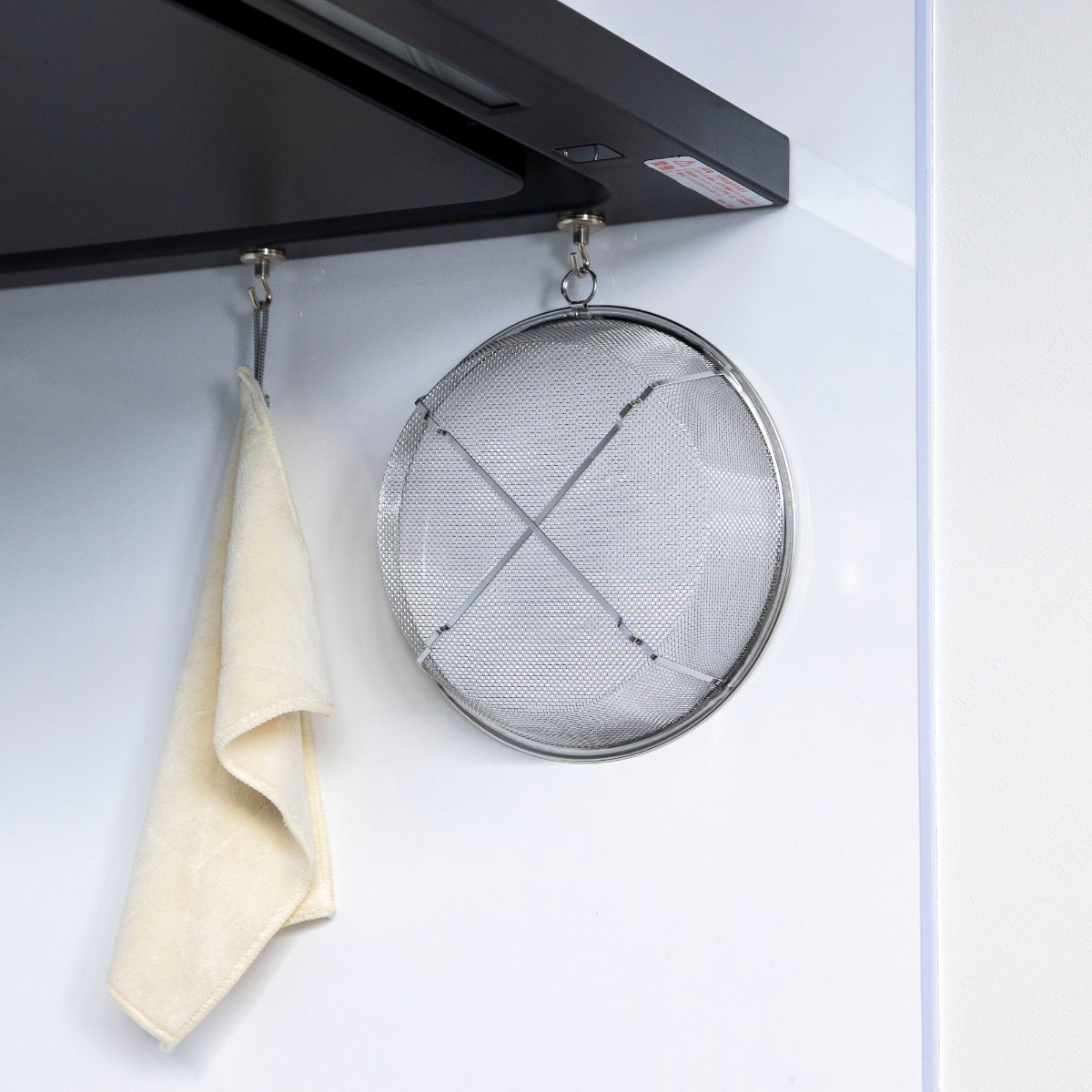 サイズ違いや同サイズを重ねても収まりが良く、収納しやすいです。リングを使用して、引っ掛けて収納することもできます。