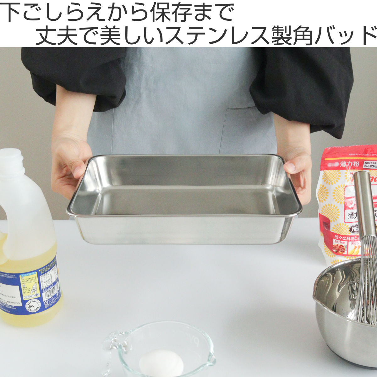 工房アイザワ バット 角バット 15枚取 ステンレス製 日本製 ( キッチン キッチンバット ステンレスバット 角型 料理 調理 18-8ステンレス 湯切り 下ごしらえ 長方形 使いやすい 丈夫 アイザワ ケース トレー ア 加工 調理用バット )