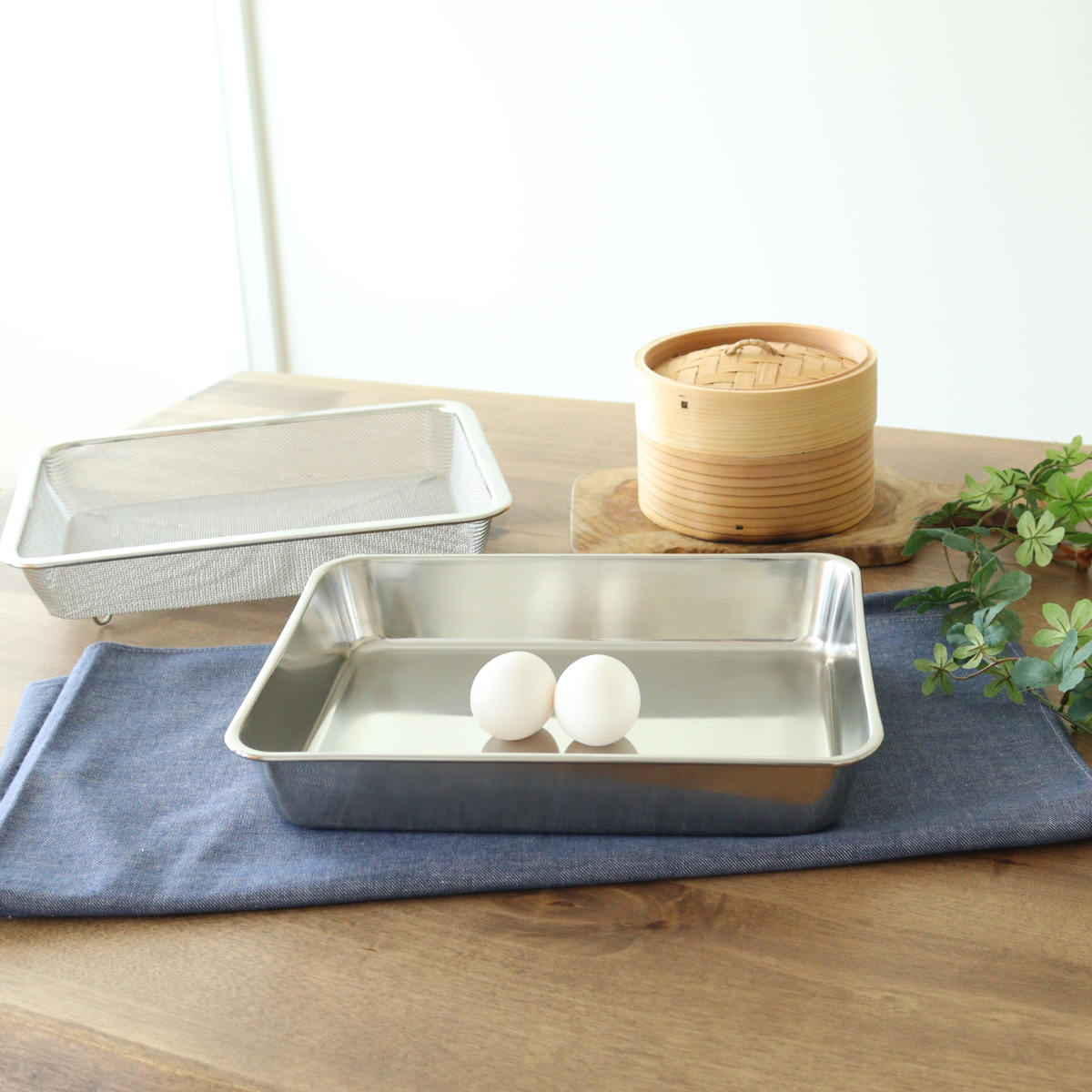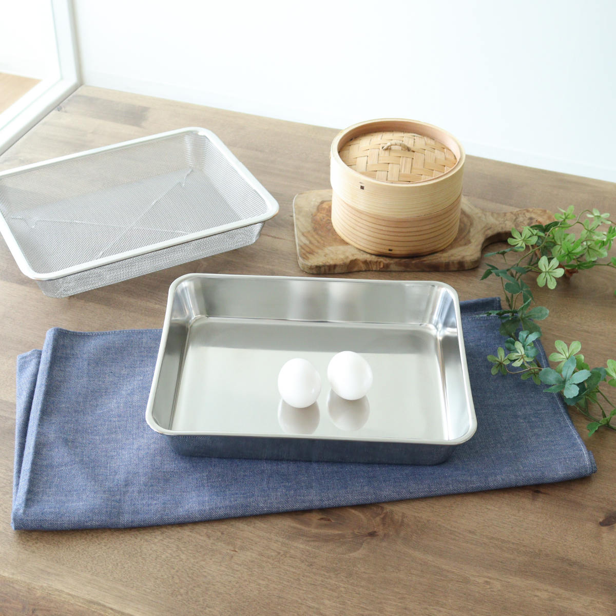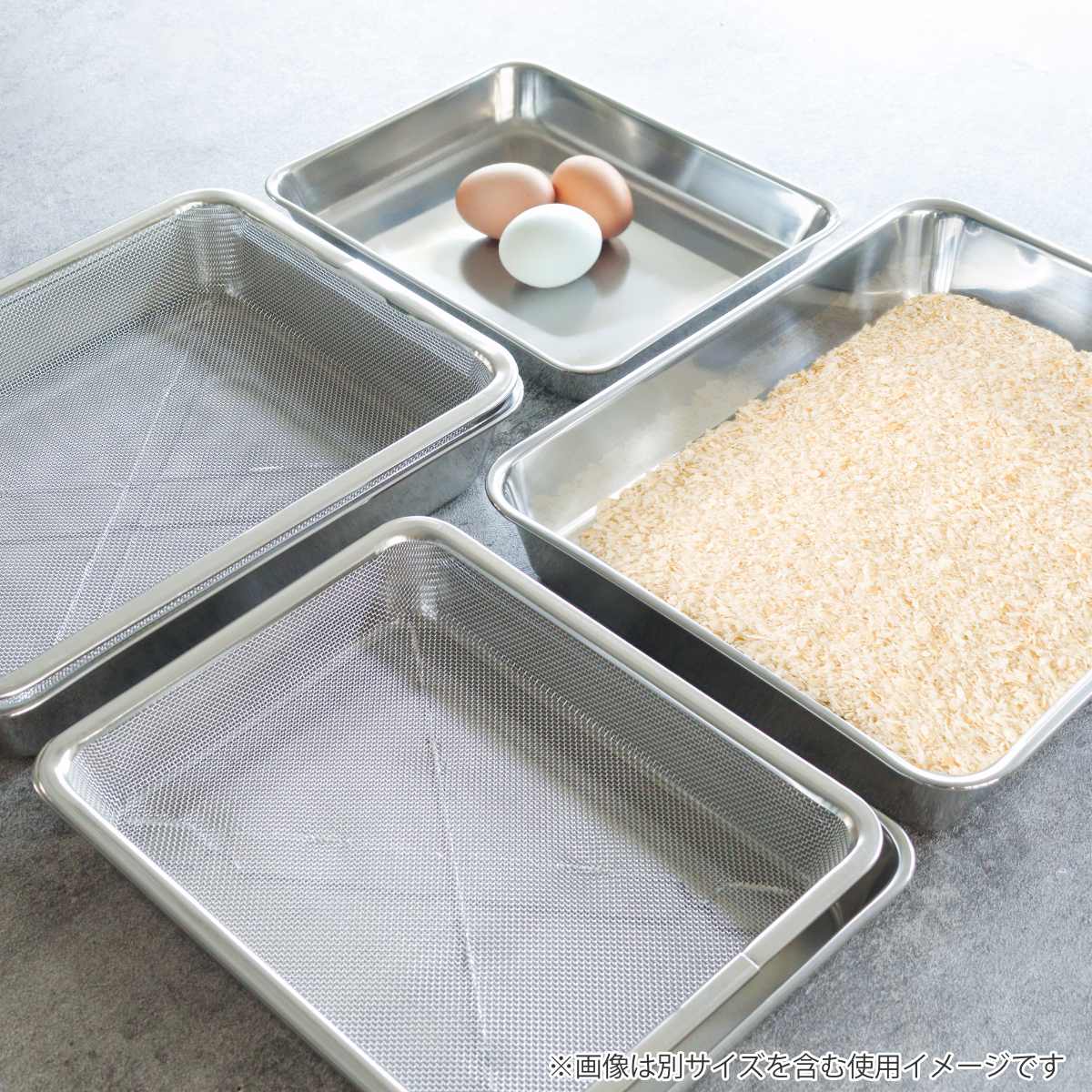 肉や魚の下味付け、粉付け、天ぷらの衣付けなど、毎日の料理作りで活躍します。同シリーズの角ザルと組み合わせれば、下ごしらえから盛り付けまでさらに効率よく行えます。