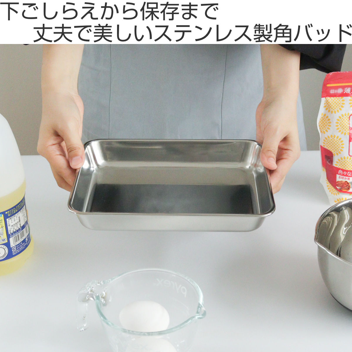 工房アイザワ バット 角バット 21枚取 ステンレス製 日本製 ( キッチン キッチンバット ステンレスバット 角型 料理 調理 18-8ステンレス 湯切り 下ごしらえ 長方形 使いやすい 丈夫 アイザワ ケース トレー ア 加工 調理用バット )