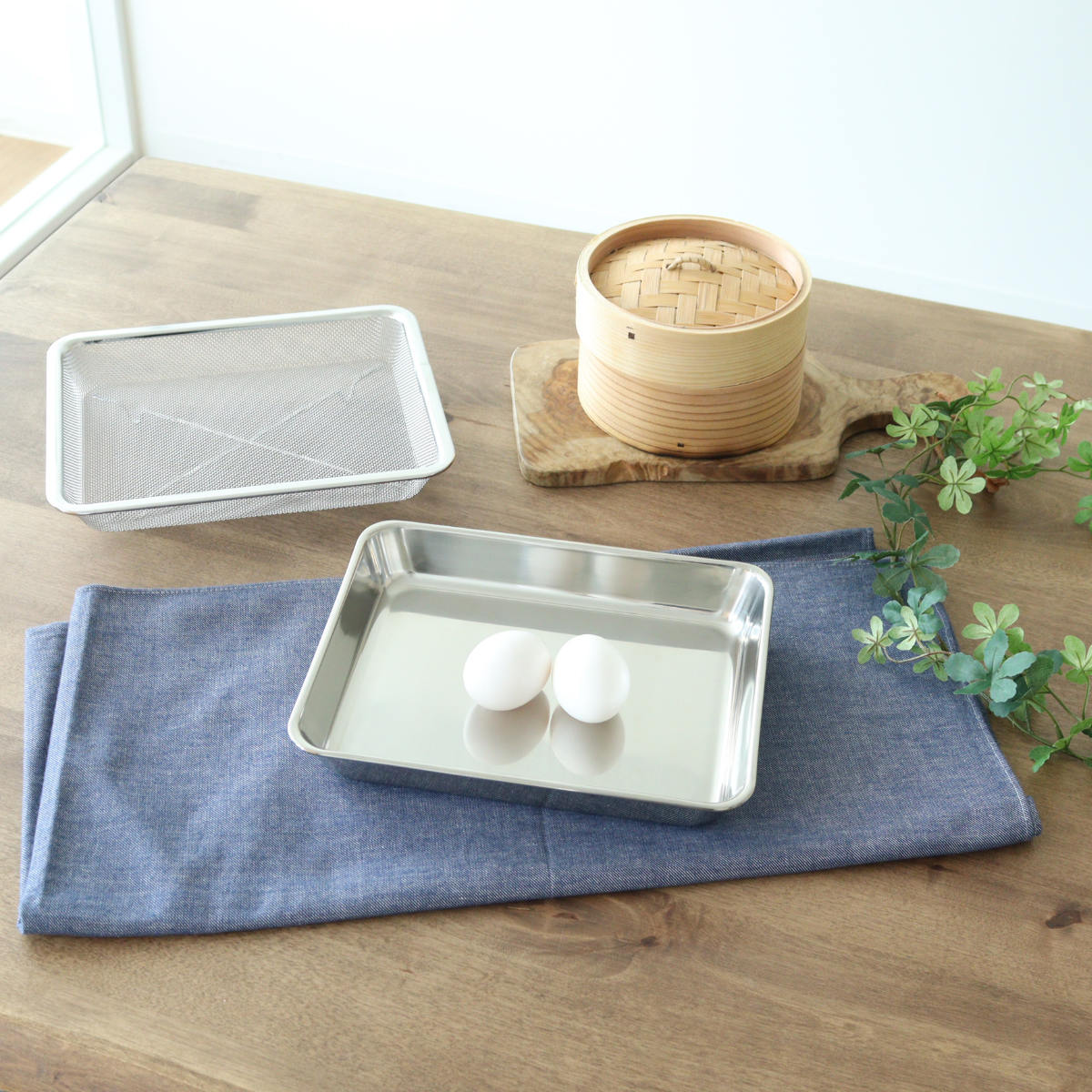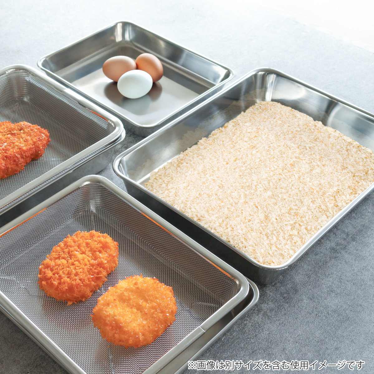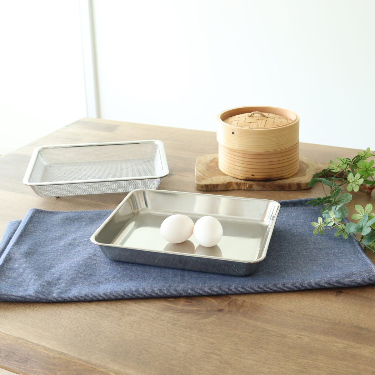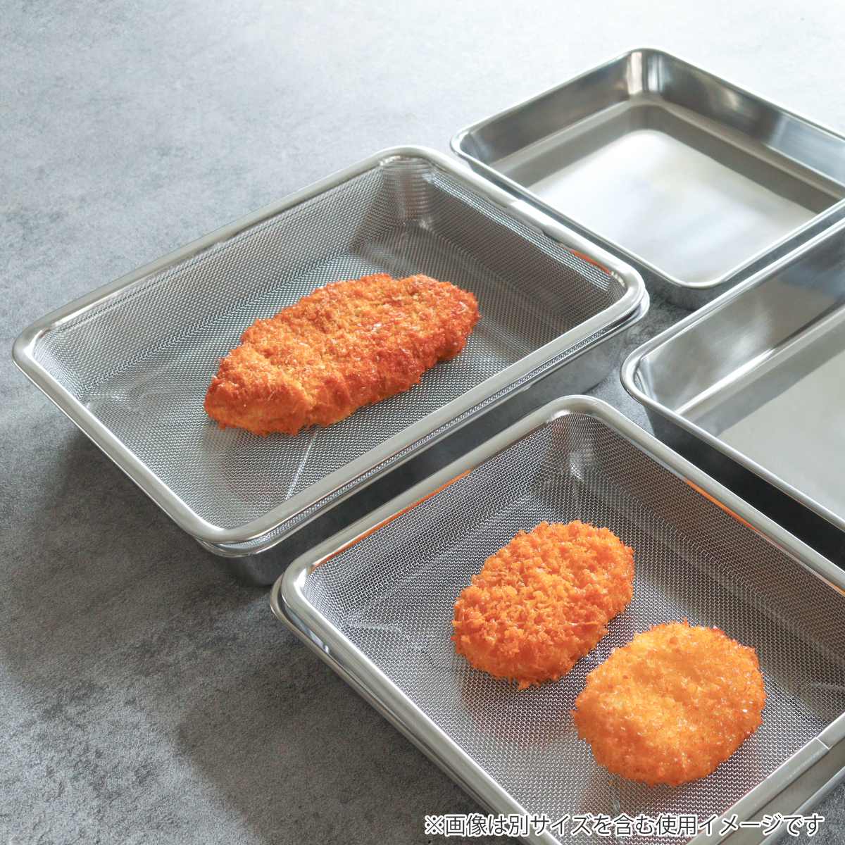 肉や魚の下味付け、粉付け、天ぷらの衣付けなど、毎日の料理作りで活躍します。同シリーズの角ザルと組み合わせれば、下ごしらえから盛り付けまでさらに効率よく行えます。