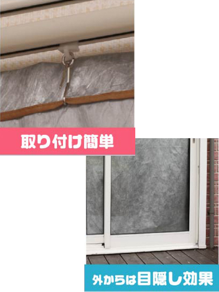 | 材質 | 本体:アルミ蒸着ポリエステル不織布 バイヤス:ポリプロピレン フック:スチール(5個×2) |