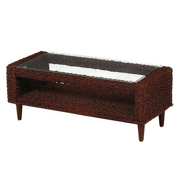 ローテーブル 幅100cm ガラス天板 アバカ素材 完成品 グランツ ( センターテーブル リビングテーブル 机 デスク ガラステーブル アバカ マニラ麻 アジアンテイスト インテリア おしゃれ 天然素材 屋内 ) 【ダークブラウン】