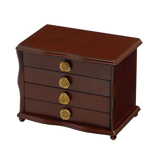 ジュエリーボックス 4段 ミラー付 花型取っ手 幅26cm ( アクセサリーボックス ジュエリー収納 鏡 ミラー 化粧品入れ アクセサリー収納 アクセサリー ジュエリーケース アクセサリーケース 小物収納 小物入れ ジュエリー )【 ブラウン 】