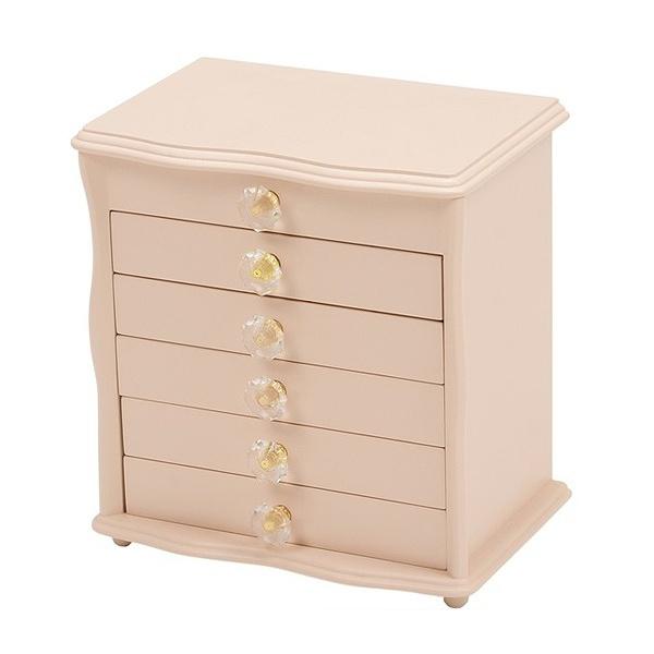 ジュエリーボックス 6段 ミラー付 クリア取っ手 幅26cm ( アクセサリーボックス ジュエリー収納 鏡 ミラー 化粧品入れ アクセサリー収納 アクセサリー ジュエリーケース アクセサリーケース 小物収納 小物入れ ジュエリー )【 ピンク 】