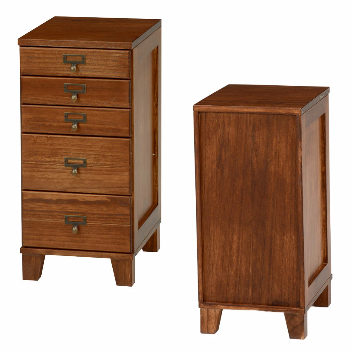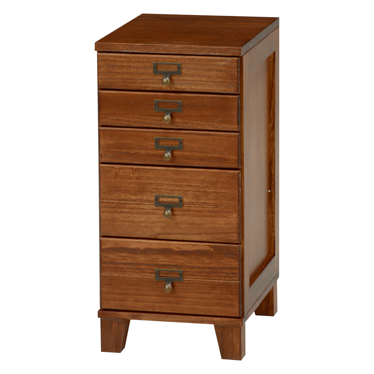 スリムチェスト 幅28cm 5段 天然木 完成品 A4対応 引出し ウッドプロダクツ ( 桐 木製 多段チェスト 収納 チェスト 背面化粧 五段 桐材 隙間収納 ネームプレート付 ブラウン ナチュラルホワイト ) 【ブラウン】