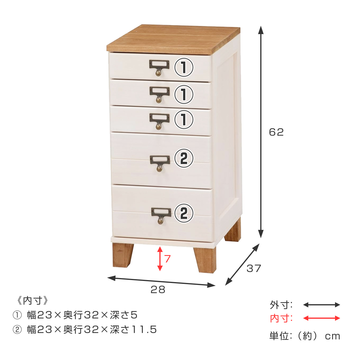| 引き出し段数 | 5段 |