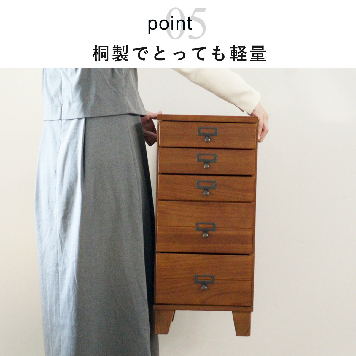 限られた空間にも置きやすい スリムチェスト 5段
