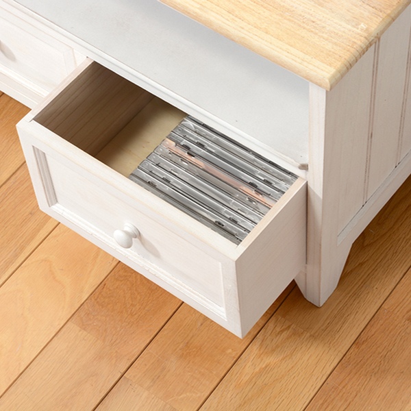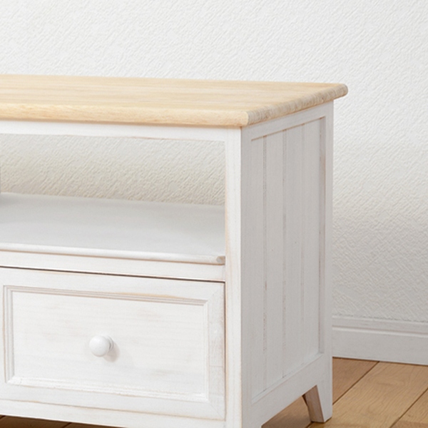 アンティーク塗装を施した、かすれたホワイトカラーが魅力的な愛らしいテレビ台です。どこか懐かしい素朴なテイストは、お部屋をお洒落な空間に演出します。また、テレビ台は完成品なので、取り出してすぐに使用する事ができます。