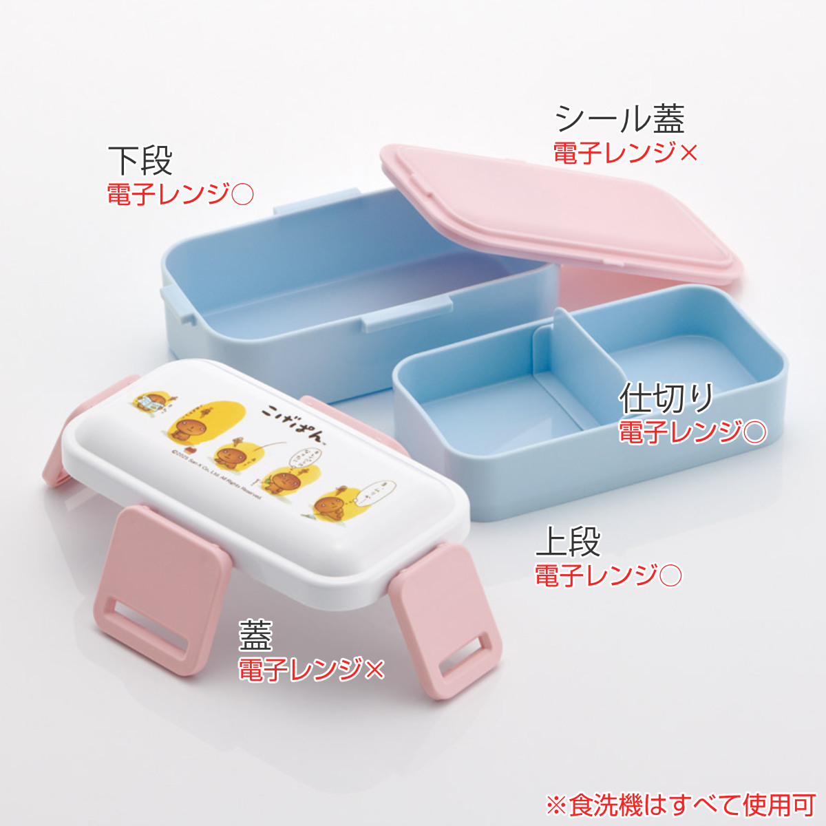 弁当箱 2段 600ml 2段ふわっと弁当箱 こげぱん ( ランチボックス 食洗機対応 レンジ対応 二段 ドーム型 4点ロック 日本製 仕切り付き 食洗機OK レンジOK お弁当 弁当 二段弁当 )