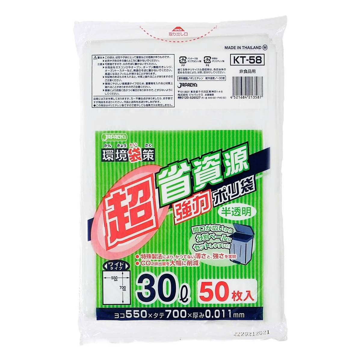 ●従来品より厚みを薄くし、強度を維持させた超省資源タイプのゴミ袋です。