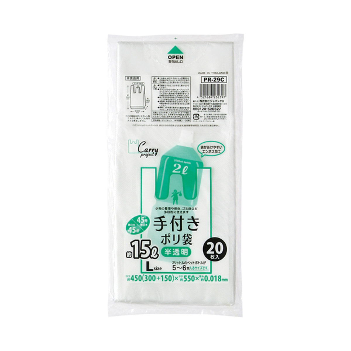 ポリ袋 15L 20個セット 400枚入り 手付き 半透明 ( ビニール袋 縦55×横30cm 取っ手付き マチ付き カサカサ レジ袋 ゴミ袋 消耗品 日用品 キッチン用品 )