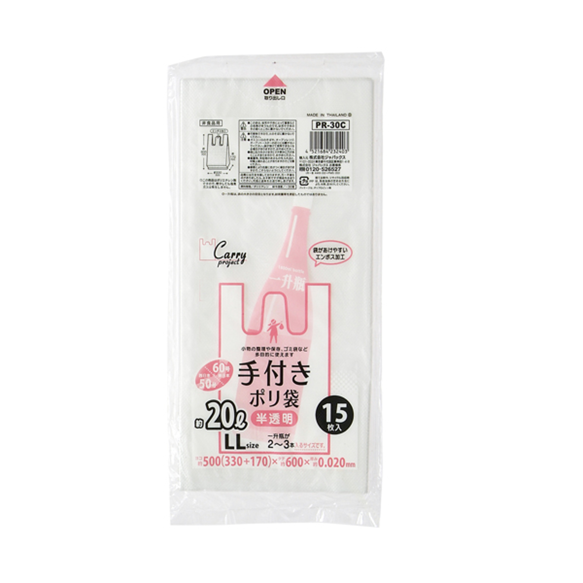 ポリ袋 20L 15枚入り 手付き 半透明 ( ビニール袋 縦60×横33cm 取っ手付き マチ付き カサカサ レジ袋 ゴミ袋 消耗品 日用品 キッチン用品 )